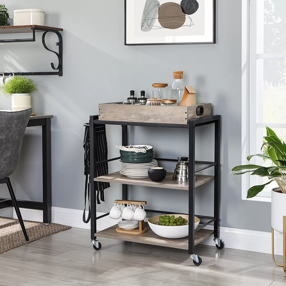 VASAGLE ALINRU Konyhai Zsúrkocsi Levehető Tálcával Szürke-Barna és Fekete
