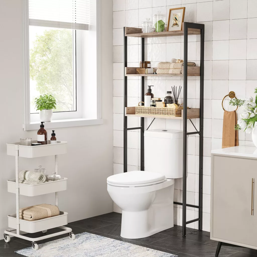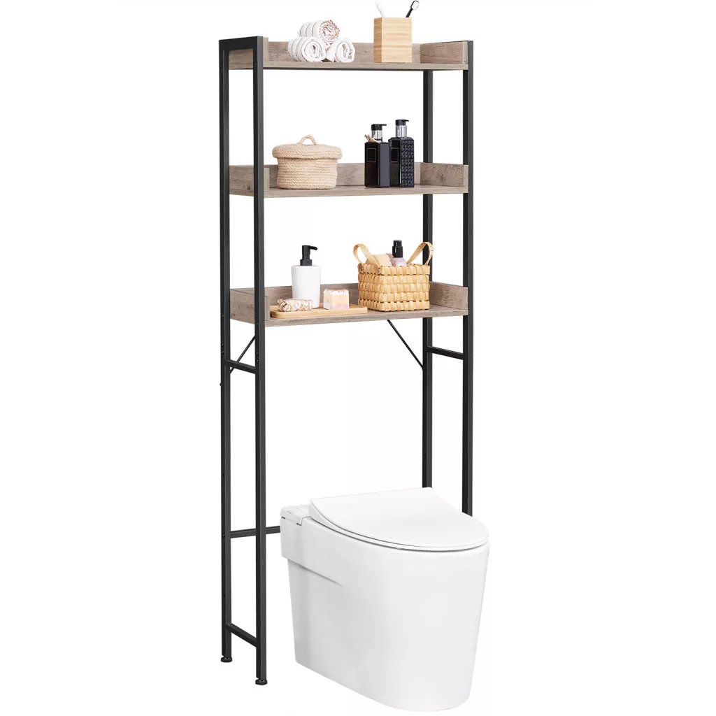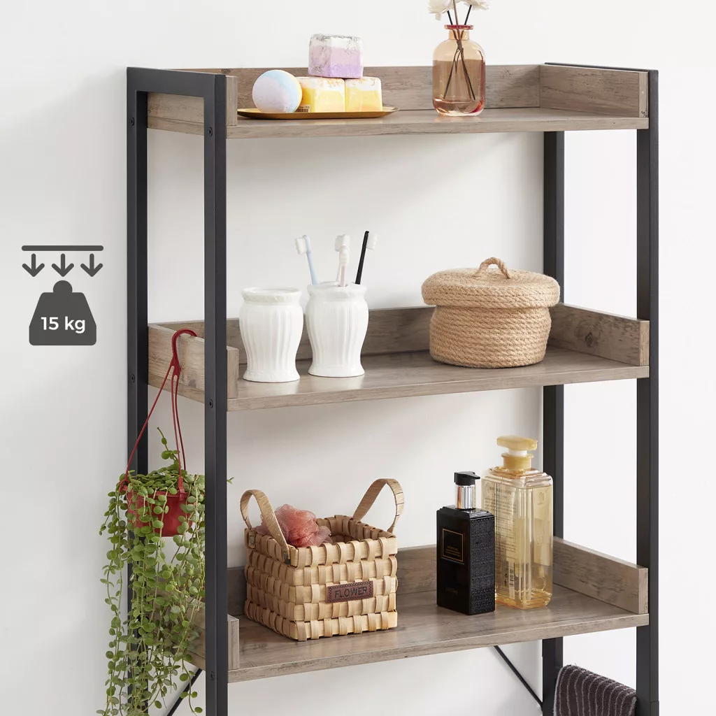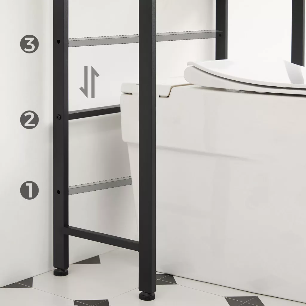 VASAGLE Alinru Ipari WC Polc Szürke-Fekete 3 Nyitott Polccal