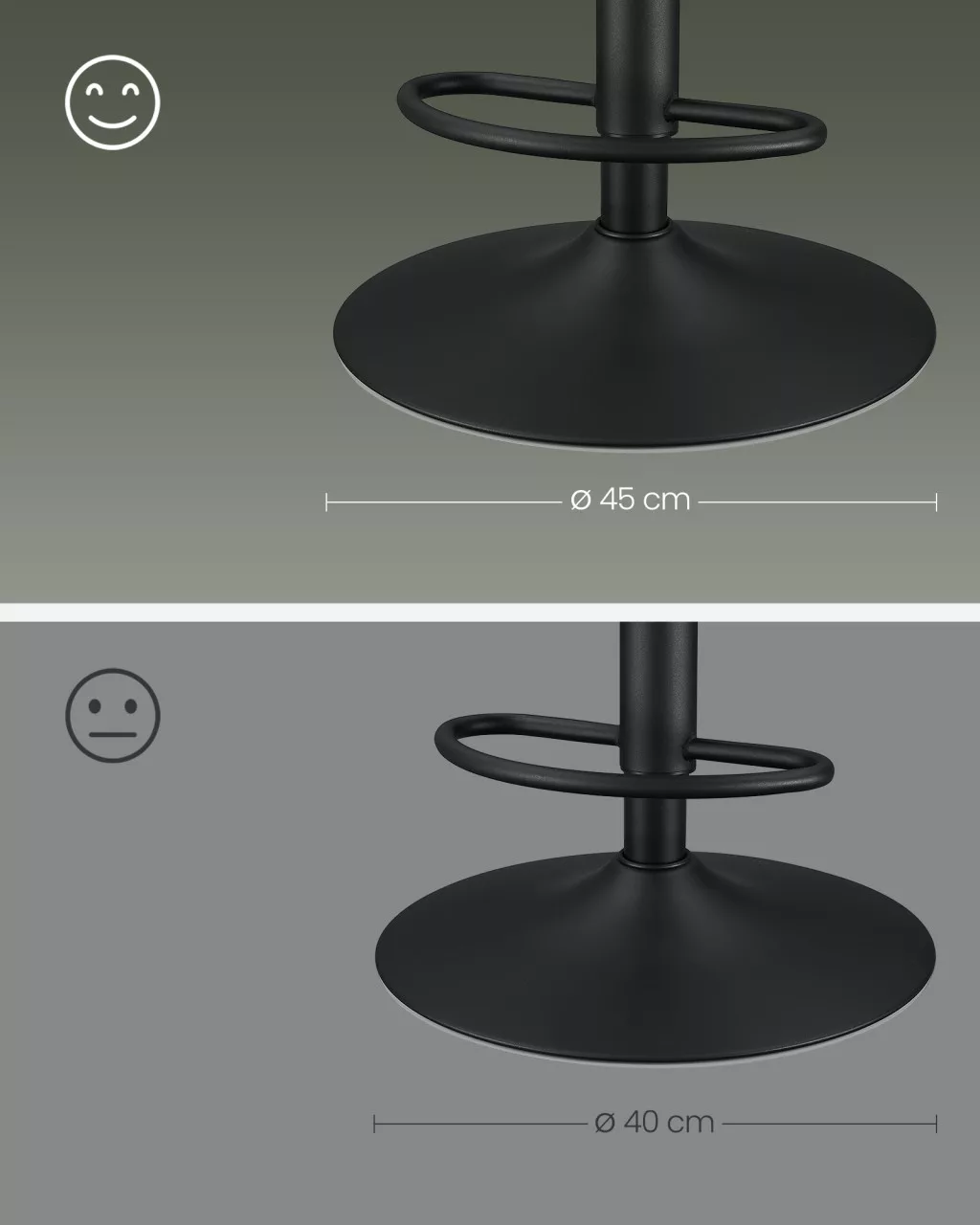 • Stabil acél váz és 45 cm-es talp, 120 kg teherbírással