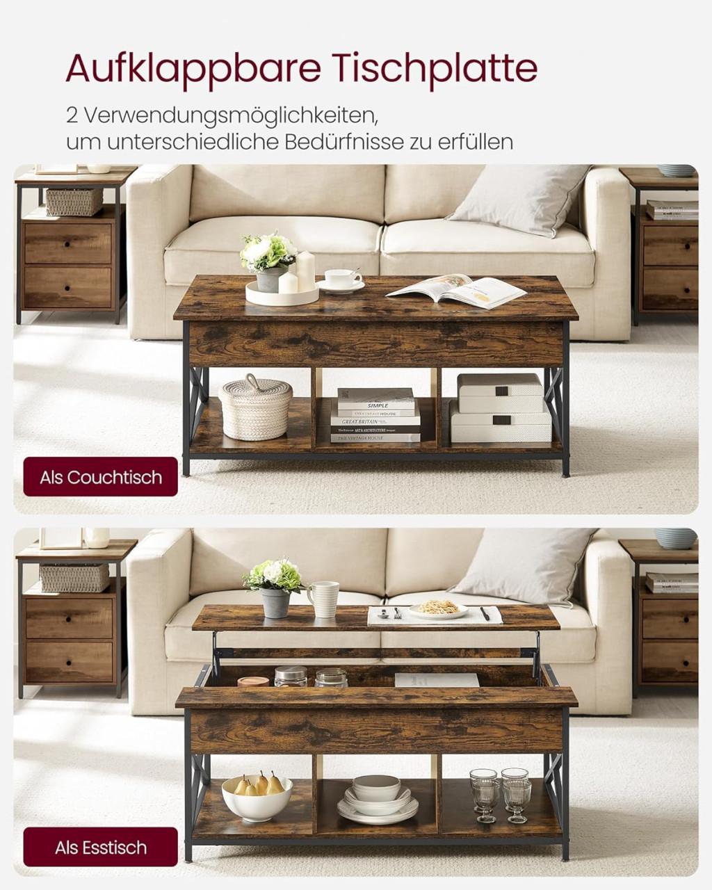 Ez a VASAGLE dohányzóasztal tökéletesen ötvözi a funkcionalitást és a stílust. A felhajtható asztallap lehetővé teszi, hogy kényelmesen dolgozzon, étkezzen vagy internetezzen a kanapén ülve. Az ipari dizájn és a vintage barna felület harmonikusan illeszkedik bármilyen modern vagy klasszikus enteriőrbe.