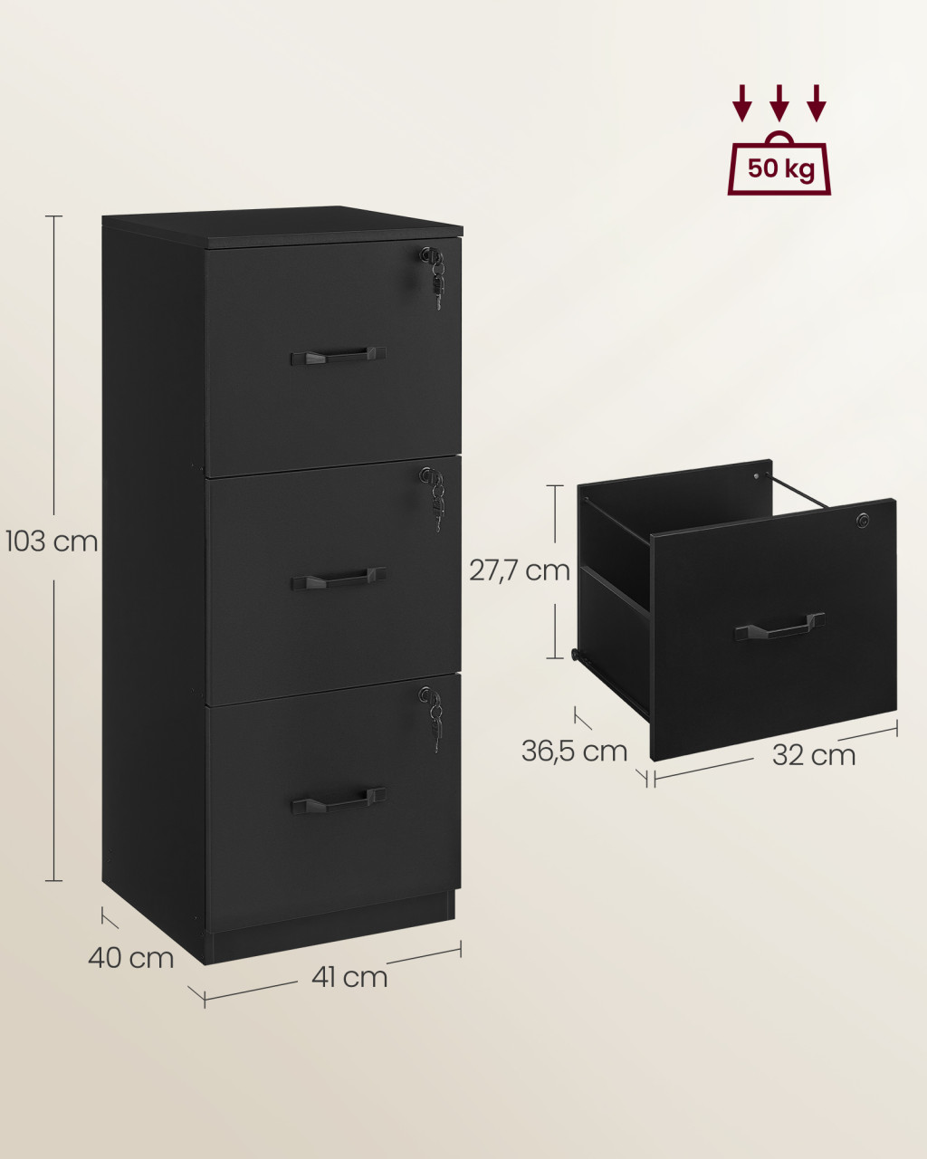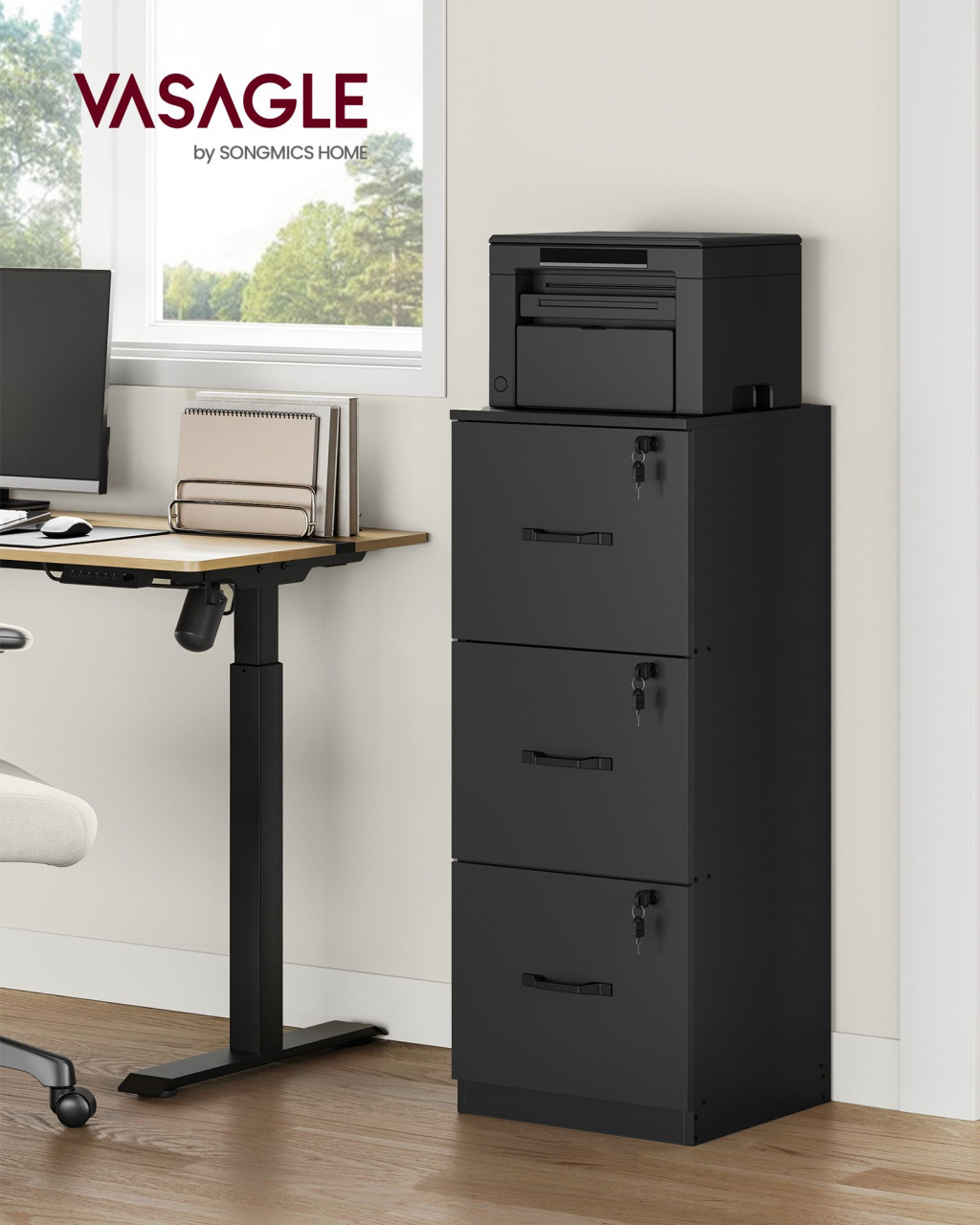 VASAGLE Álló Irattartó Szekrény 3 Zárható Fiókkal Fekete