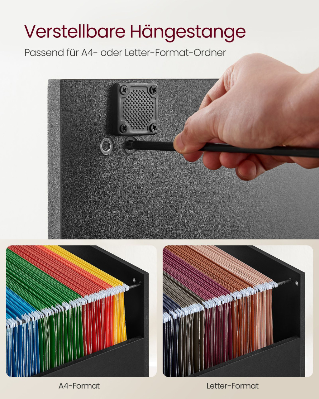 • Állítható függesztősínek: Rugalmas mappatárolás különböző méretekhez