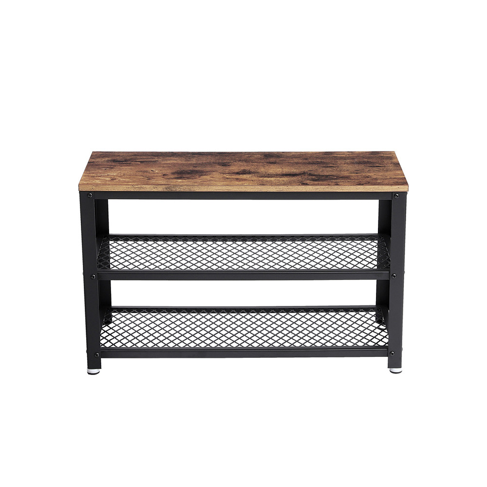 Ez a VASAGLE cipőspad tökéletes kombinációja a stílusnak és a praktikumnak. A rusztikus barna felületkezelésű bútorlappal és fekete acélvázas kialakítással azonnal az előszoba központi elemévé válik. A két hálós polc bőséges helyet biztosít 6-8 pár cipő rendezett tárolásához.