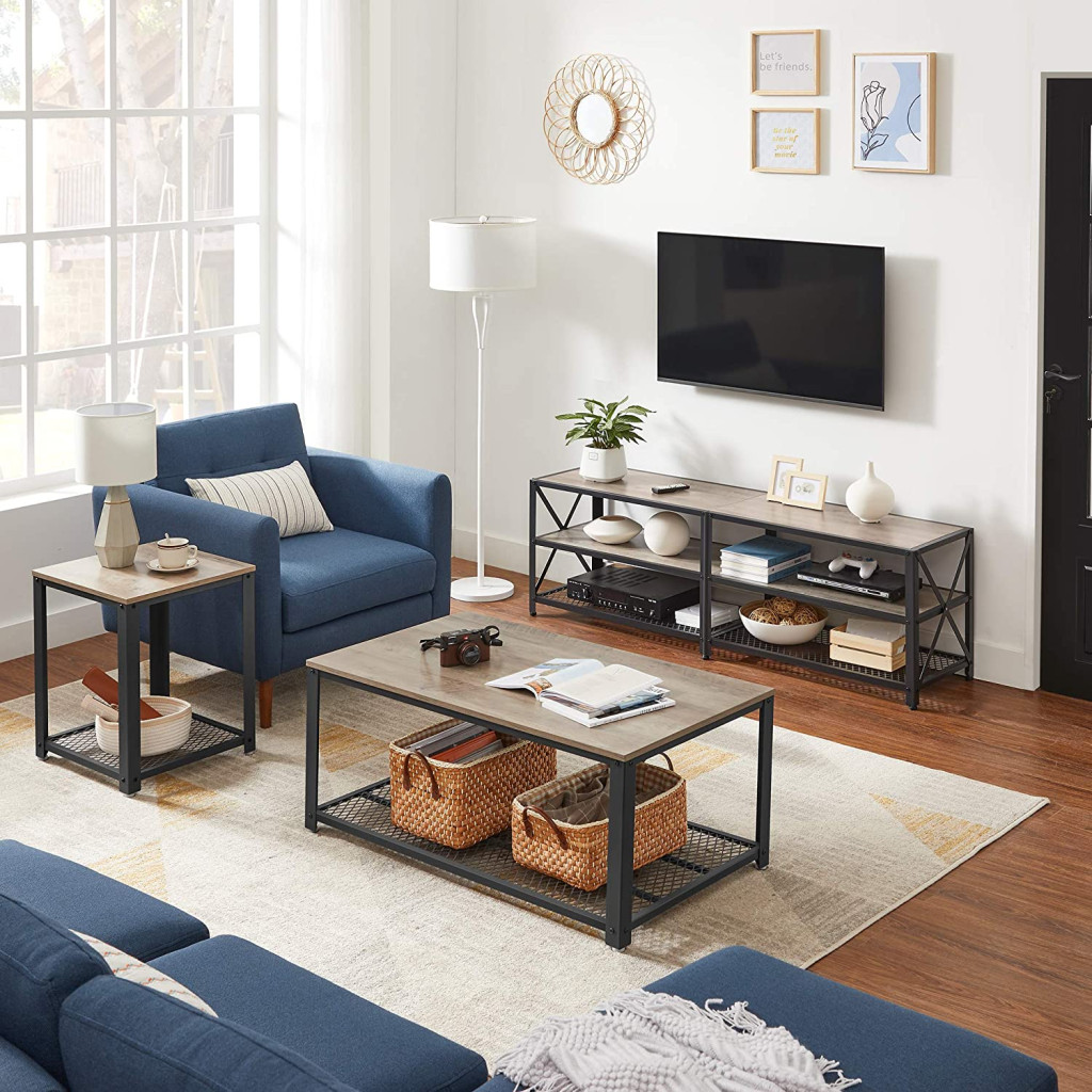 VASAGLE BRYCE Ipari TV Állvány 70 Colos TV-hez Acél Vázzal Greige-Fekete
