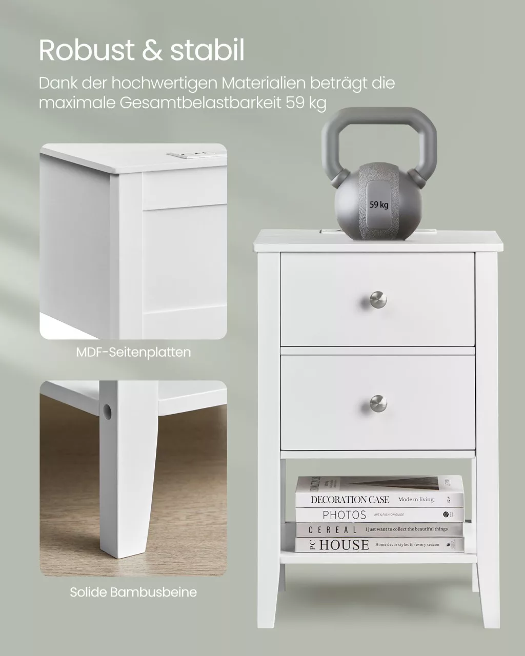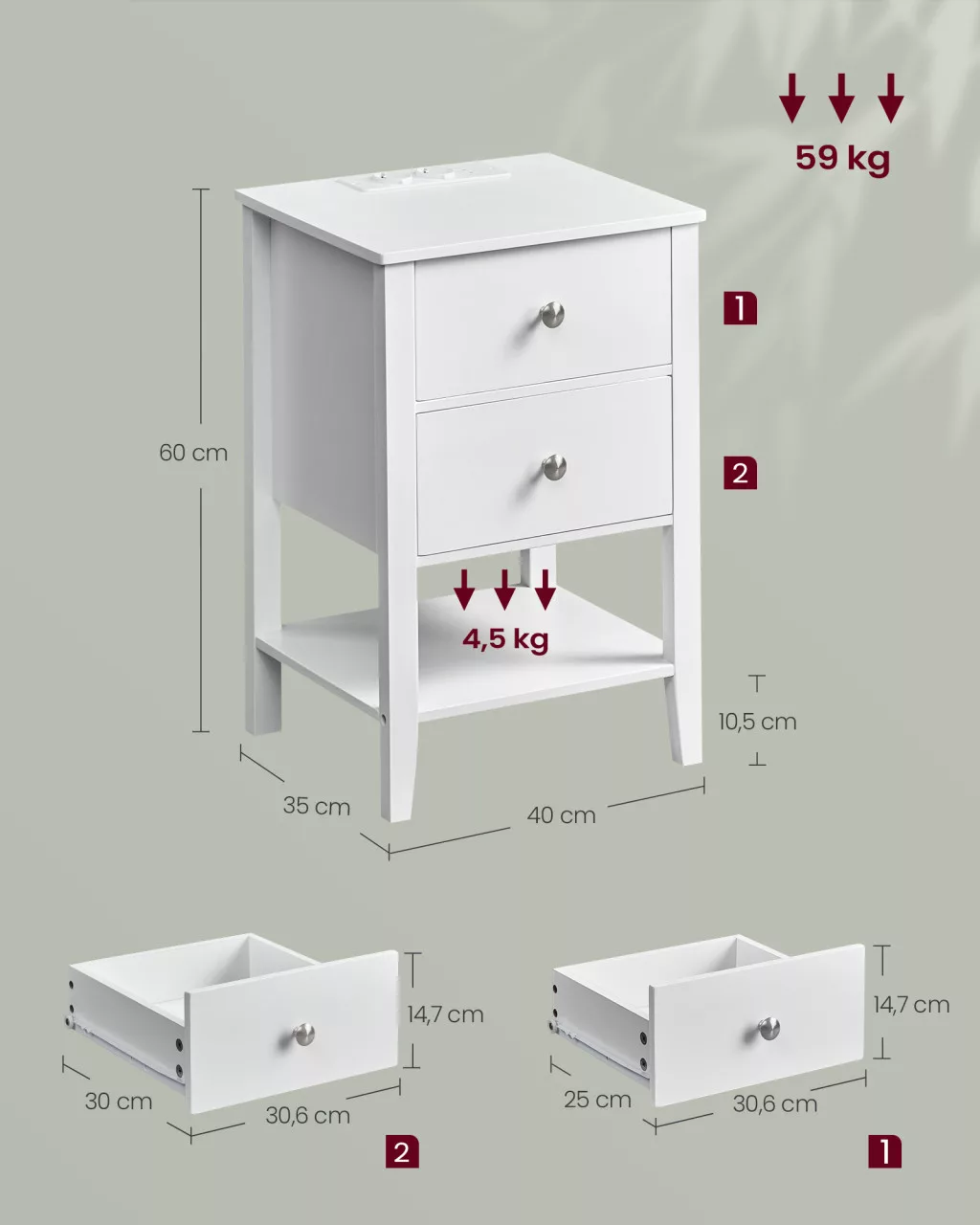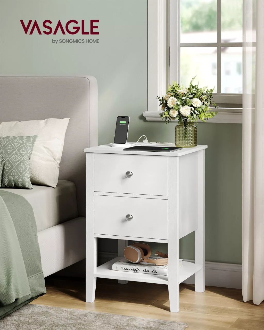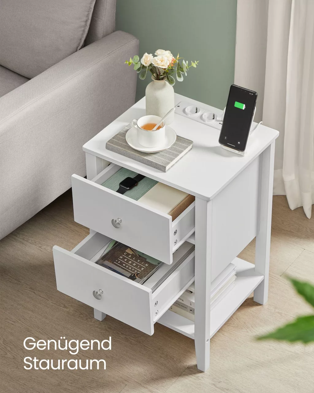 Ez a felhőfehér VASAGLE éjjeliszekrény ötvözi a praktikus tárolást a modern technológiával. A természetes bambuszból készült, robusztus szerkezet két tágas fiókot és egy nyitott polcot kínál, miközben a beépített töltőállomás 2 USB-A porttal és 2 hálózati csatlakozóval teszi kényelmesebbé az életét.