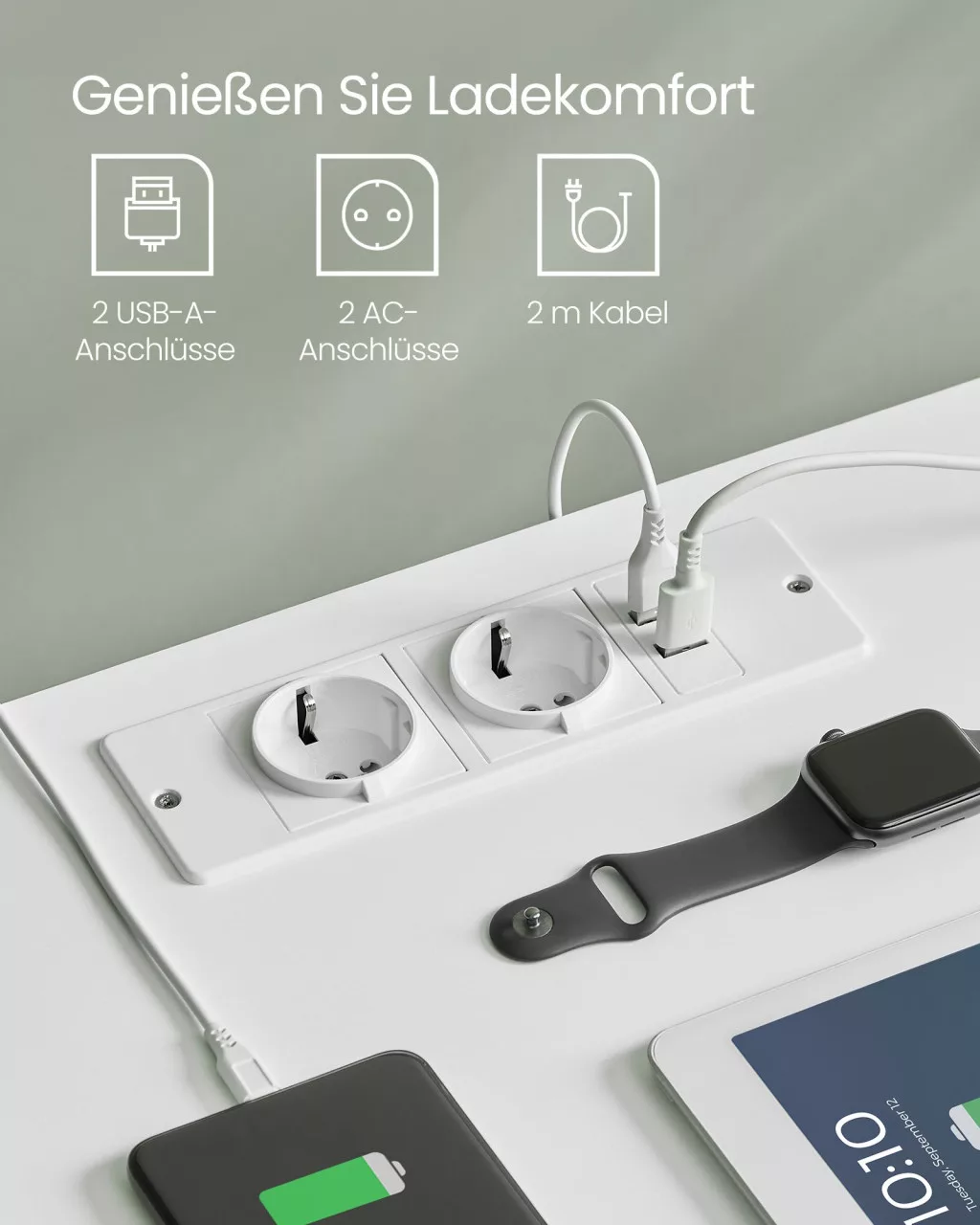• Töltési funkció: 2 USB-A port és 2 konnektor a kényelmes eszköztöltéshez
