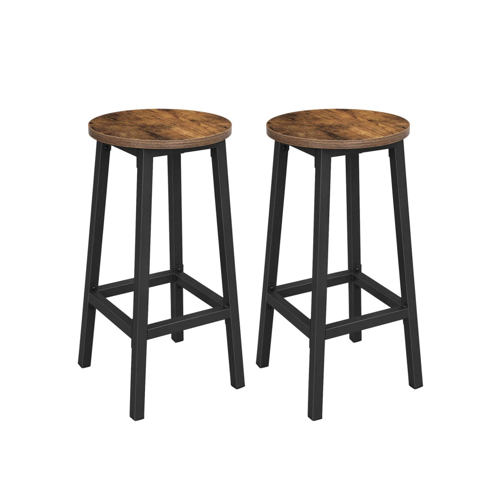 VASAGLE Bárszék Szett 2 db Magas Konyhai Szék Acél Váz 65 cm Ipari Stílus Rusztikus Barna Fekete