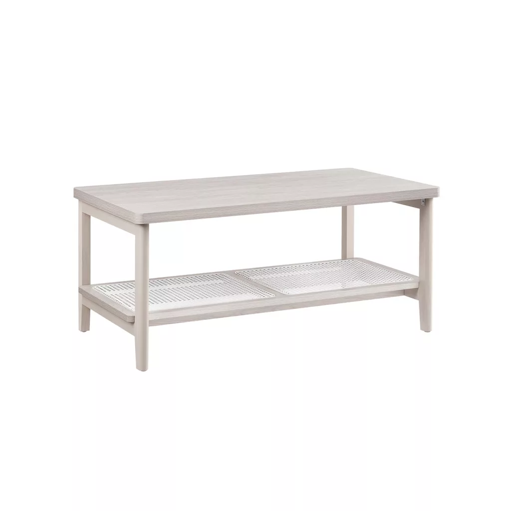VASAGLE Boho Kétsoros Dohányzóasztal Rattan Polccal Zabpehely Bézs