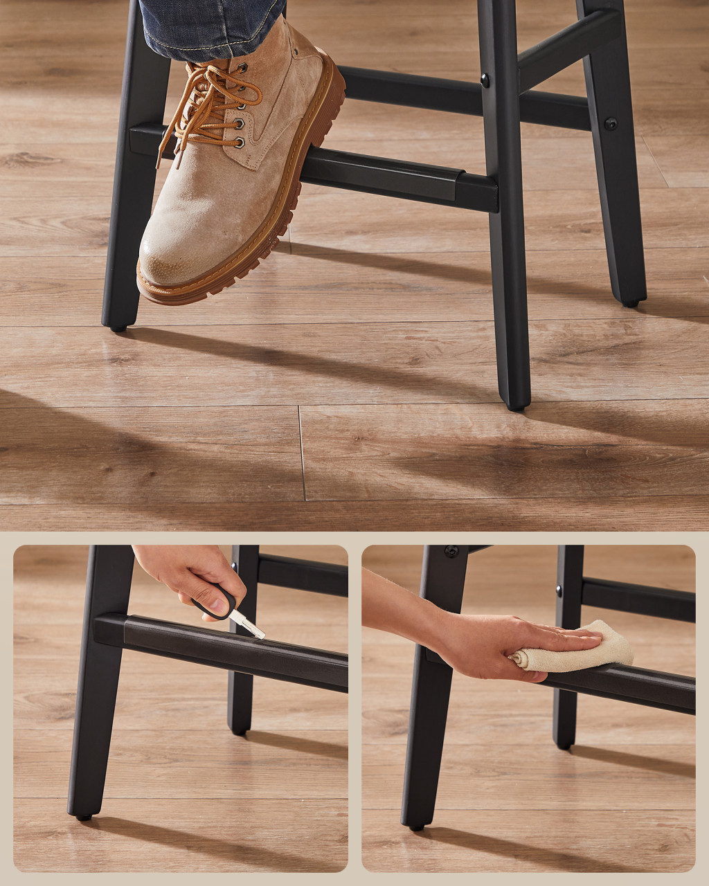 A VASAGLE bárszékek tökéletesen ötvözik a klasszikus chesterfield stílust a modern funkcionalitással. A kávébarna műbőr kárpitozás, a dekoratív gombok és a szegélyszegek elegáns megjelenést kölcsönöznek, míg a fekete fa lábak stabil alapot biztosítanak.