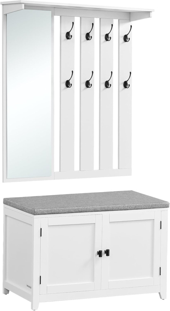VASAGLE Country Előszoba Szett Tükörrel és Cipősszekrénnyel Felhőfehér