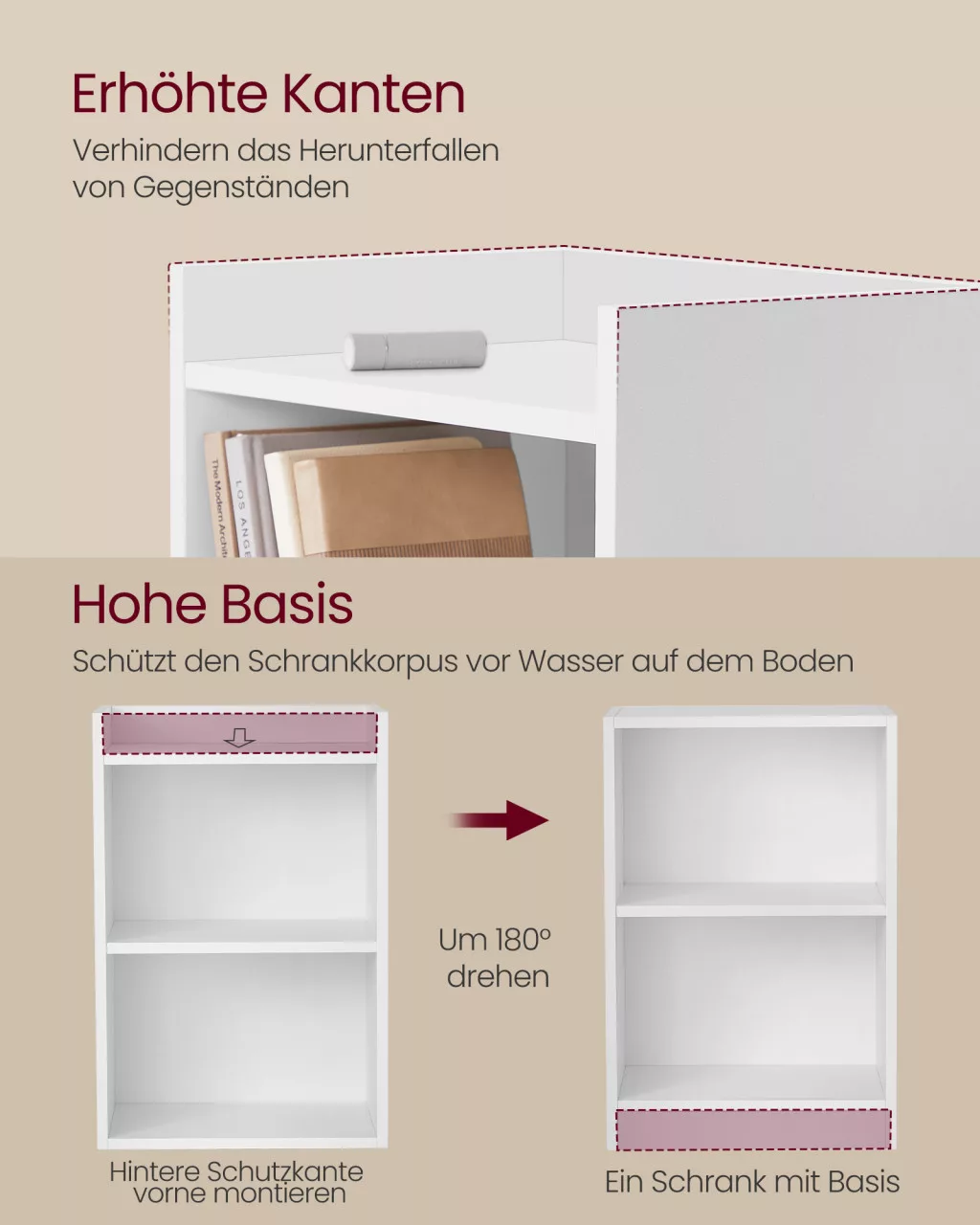 • Állítható tárolás: A polc három különböző magasságban rögzíthető, akár 35 cm magas tárgyak számára is helyet biztosítva