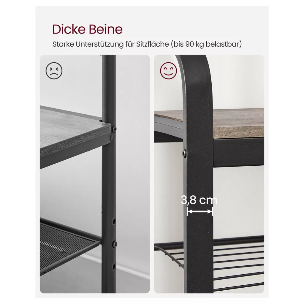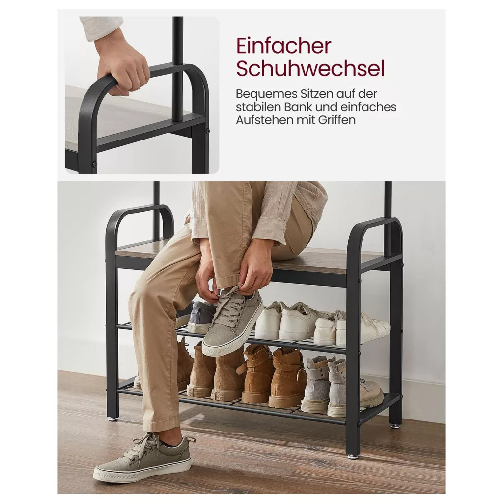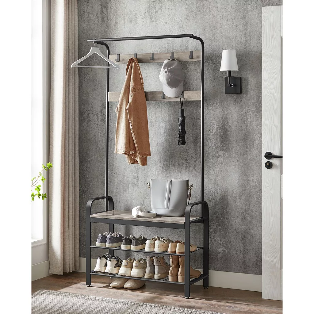 VASAGLE DAINTREE Ipari Stílusú Előszobai Állvány Paddal és Cipőtartóval Szürke-Fekete