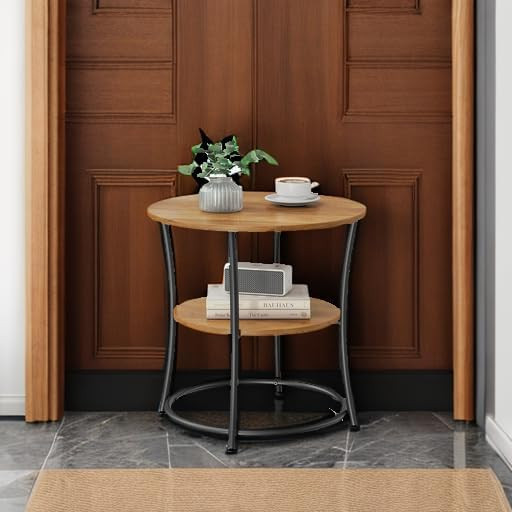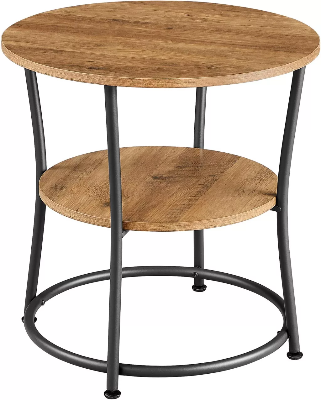 VASAGLE DAINTREE Rusztikus Kerek Kisasztal Tárolópolccal Diófa-Fekete