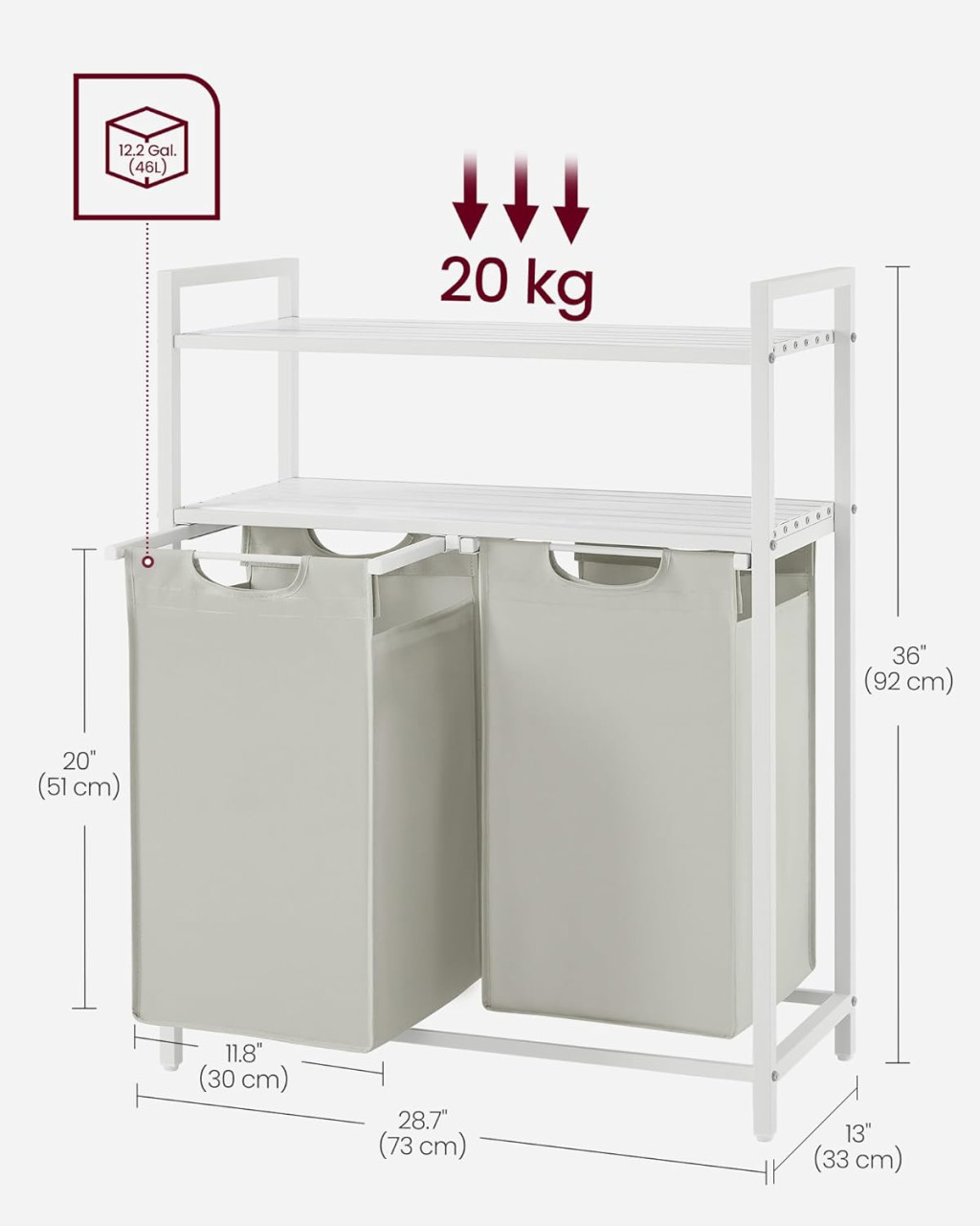 VASAGLE Dupla Szennyestartó Állvány Tárolópolcokkal Fehér