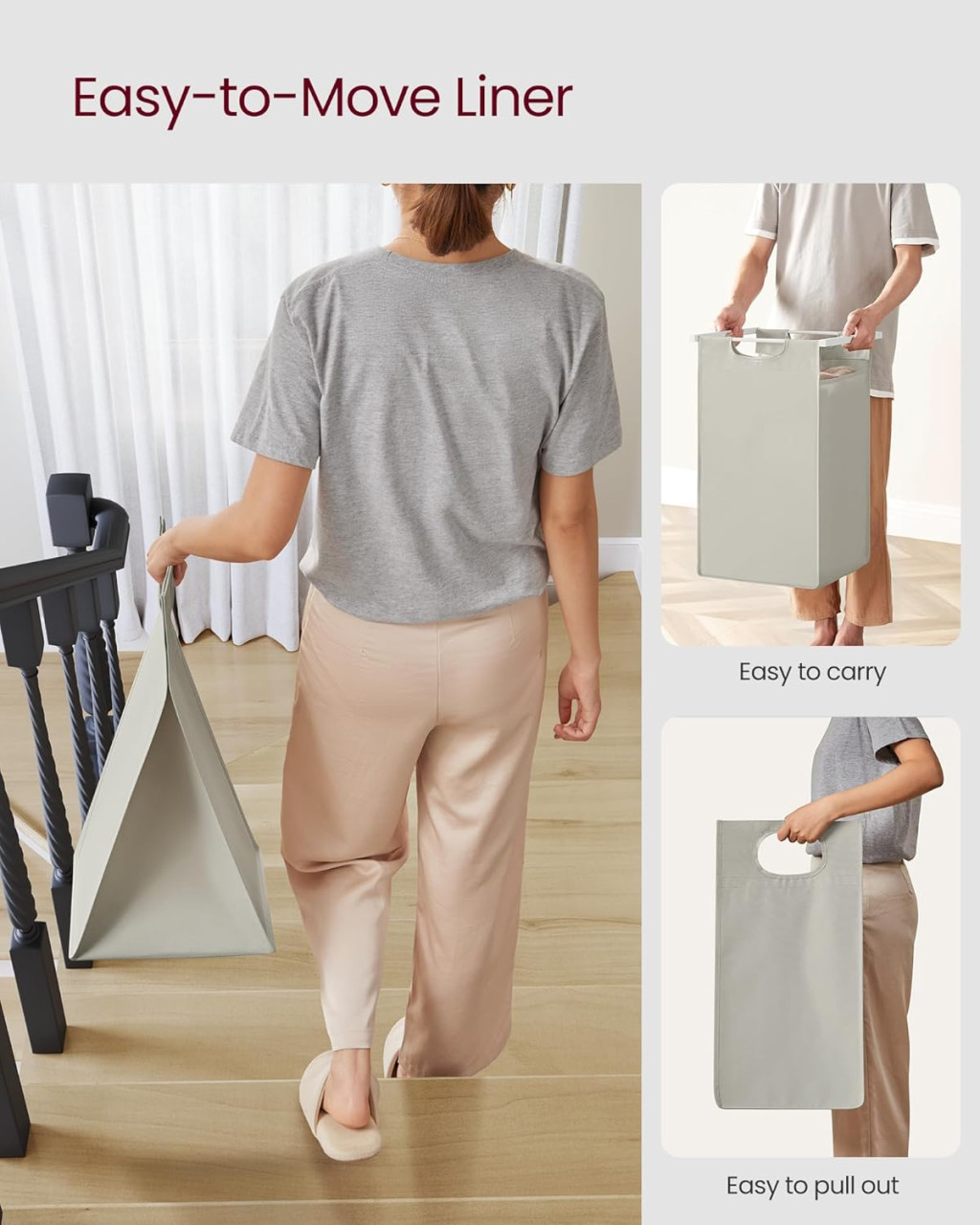 Ez a modern szennyestartó állvány két kivehető, egyenként 46 literes tárolózsákkal rendelkezik, lehetővé téve a világos és sötét ruhák praktikus szétválogatását. A vízlepergető Oxford szövetből készült zsákok könnyen kivehetők és a mosógéphez szállíthatók.