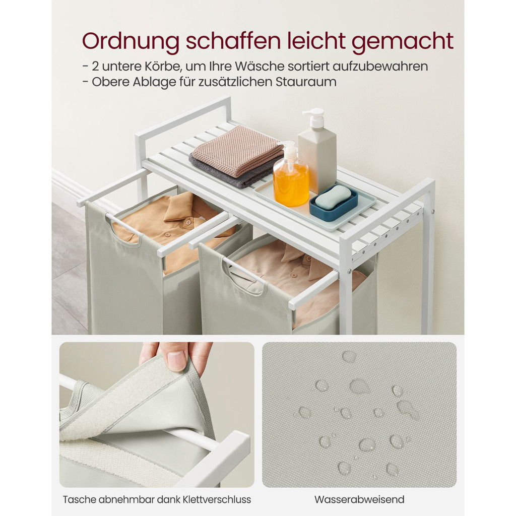 VASAGLE Dupla Szennyestartó Kosár Polccal Fehér