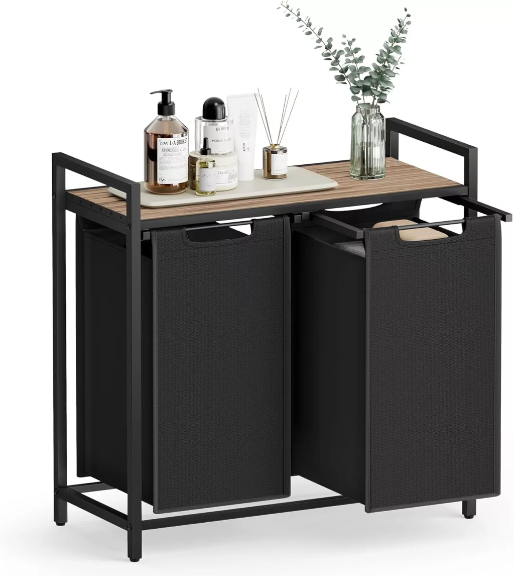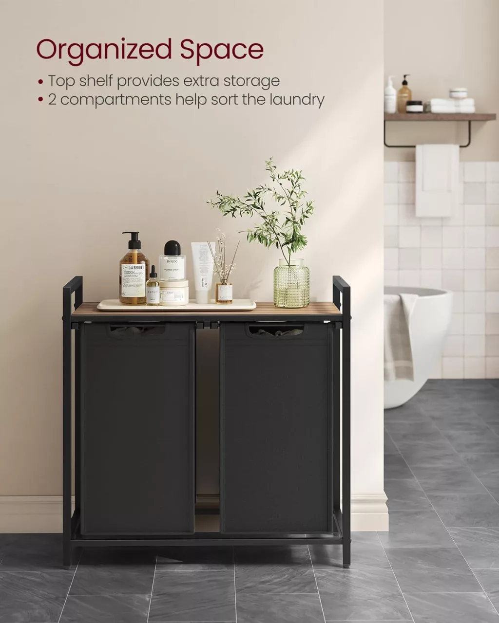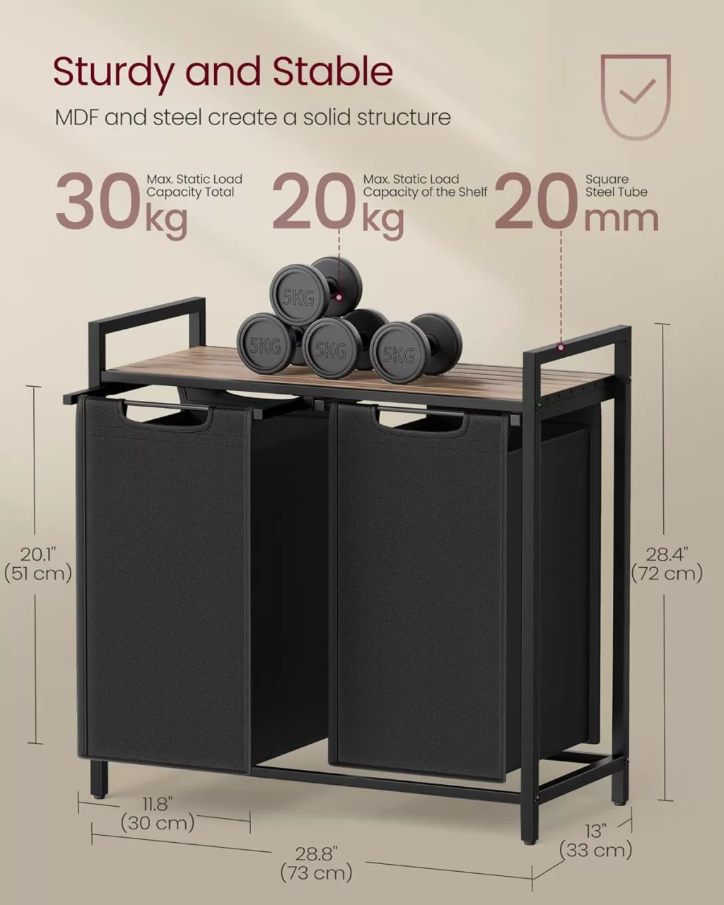VASAGLE Dupla Szennyestartó Kosár Polccal Fekete-Tevebarna
