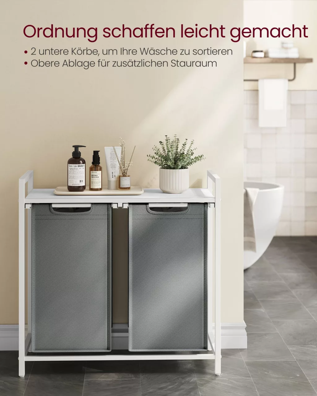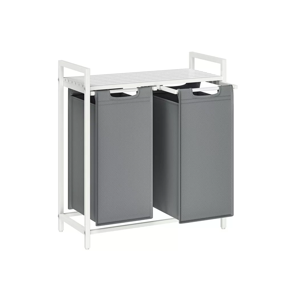 VASAGLE Dupla Szennyestartó Polccal Fehér-Szürke Oxford Szövet Mosodai Rendszerező