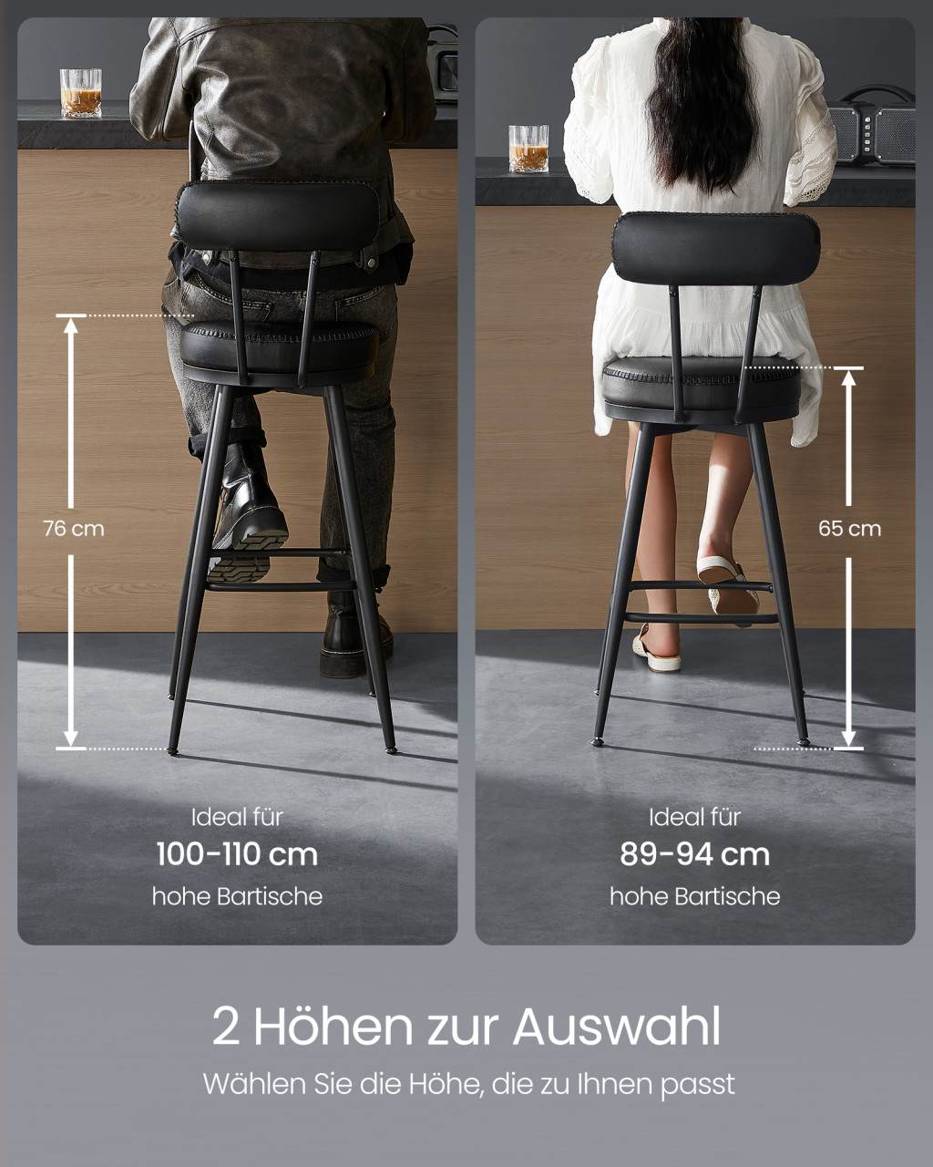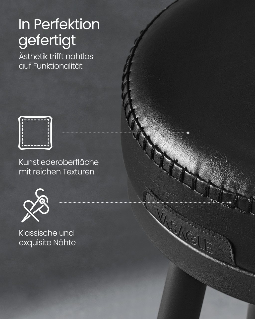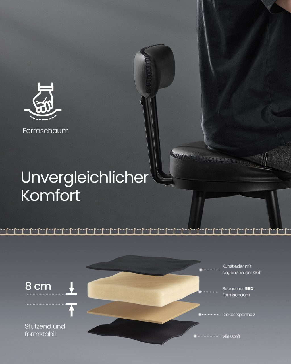A VASAGLE EKHO kollekció bárszékei ötvözik a mid-century modern dizájnt a praktikus funkcionalitással. A gondosan kidolgozott műbőr kárpitozás és a dekoratív varrások prémium megjelenést kölcsönöznek, míg a 8 cm vastag párnázás hosszan tartó kényelmet biztosít.