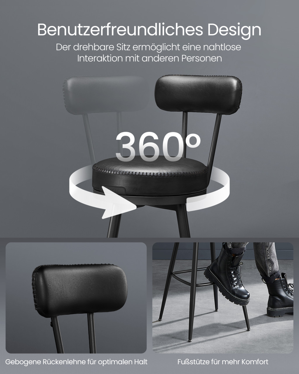 VASAGLE EKHO 360° Forgatható Bárszék Szett Műbőr Háttámlával Fekete