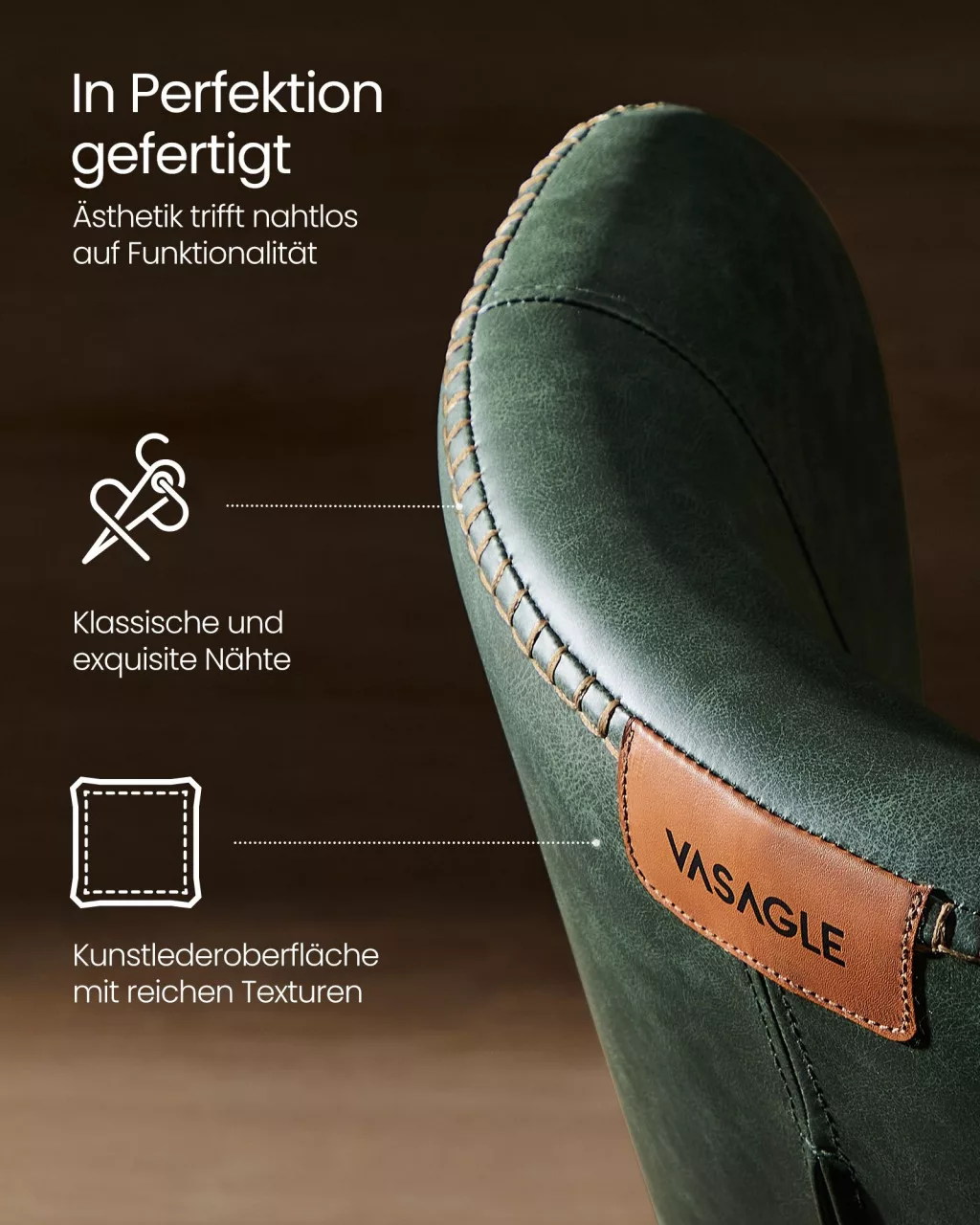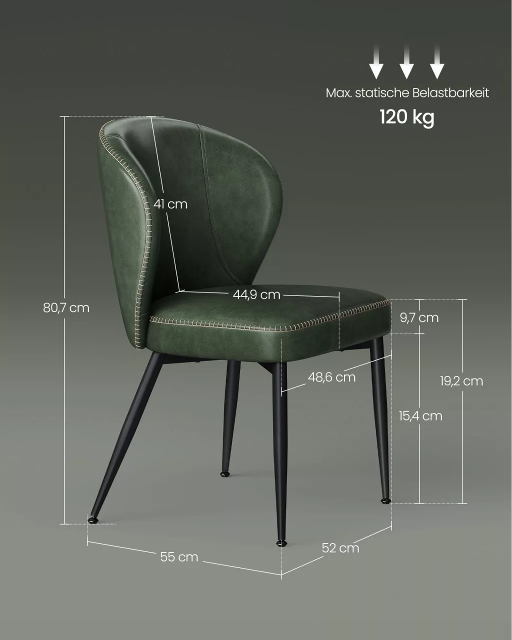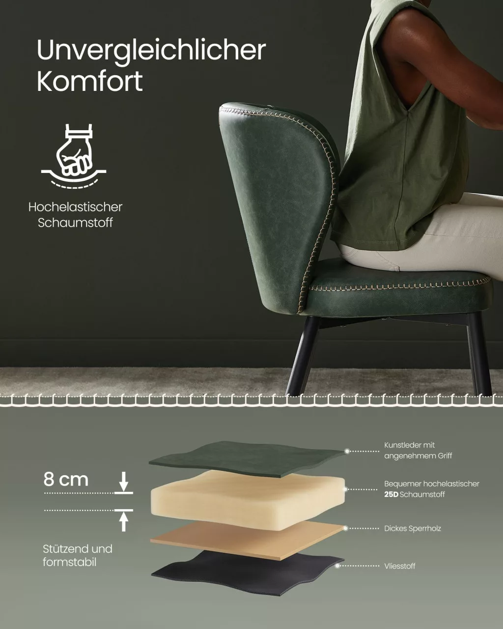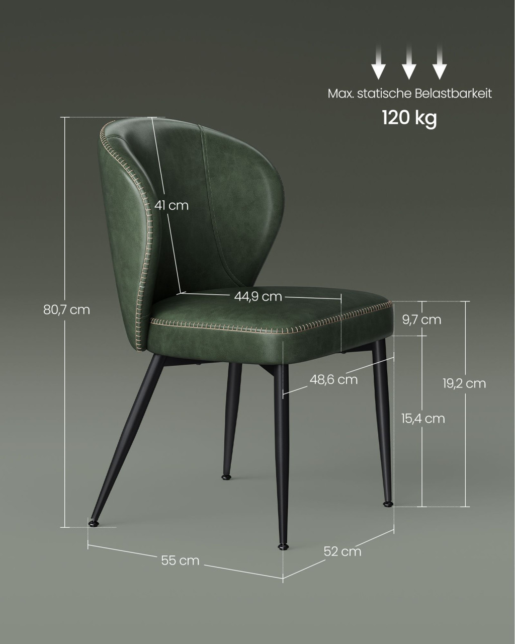 VASAGLE EKHO Erdőzöld Műbőr Étkezőszék Dekoratív Varrással