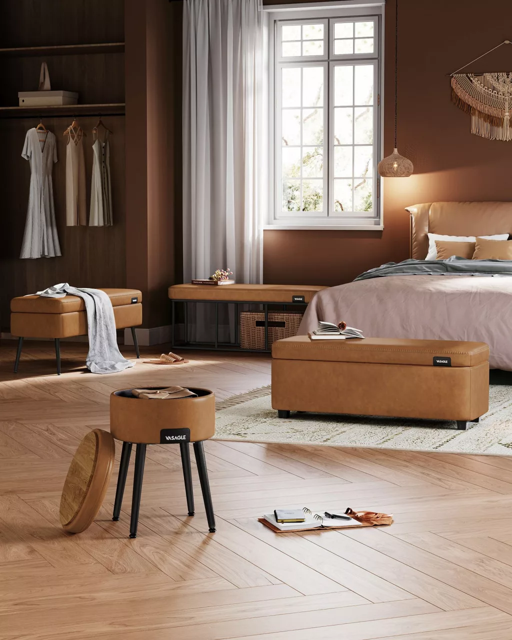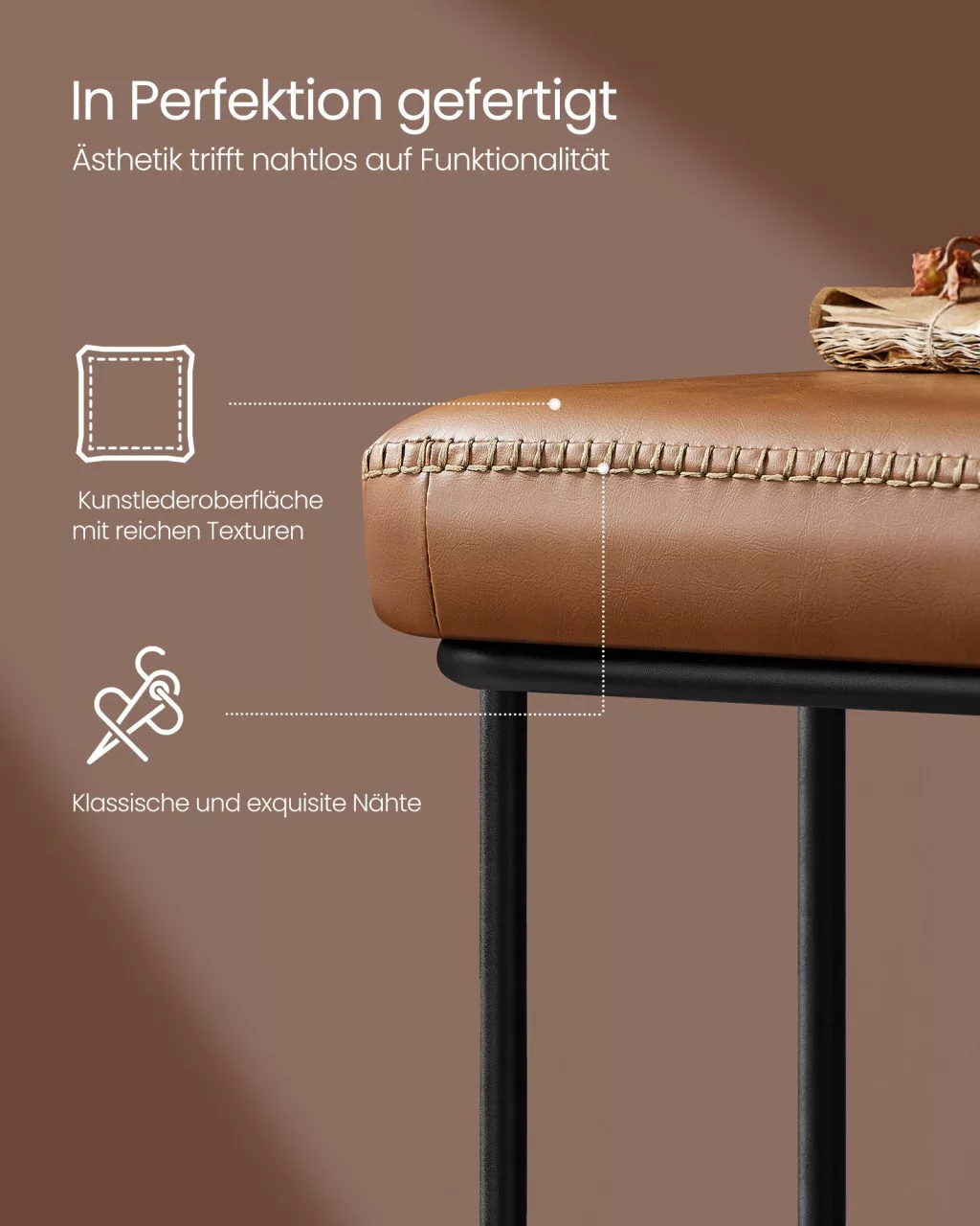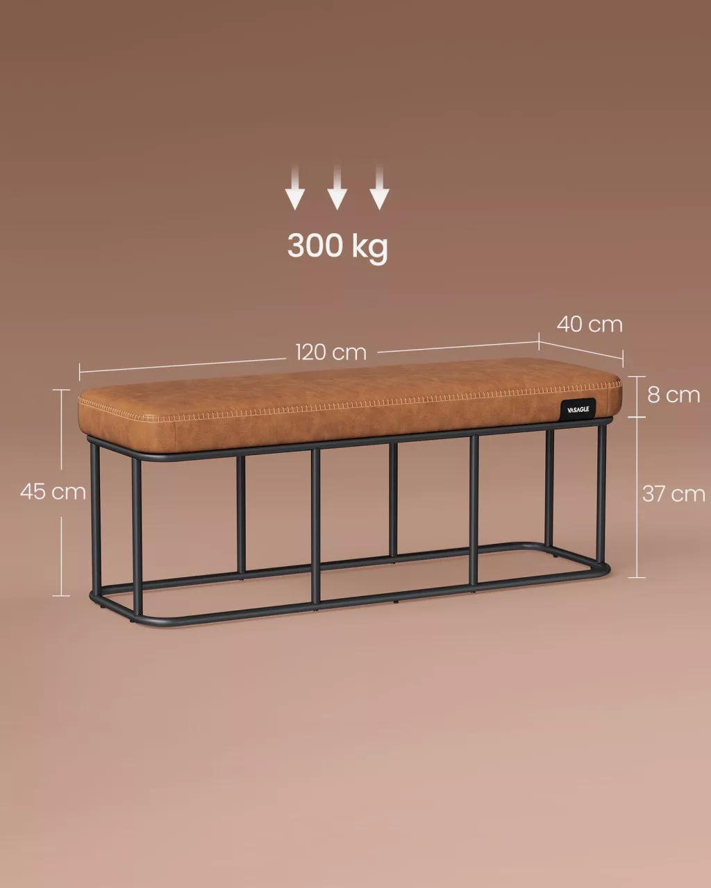 VASAGLE EKHO Karamellbarna Műbőr Ülőpad Acélvázzal