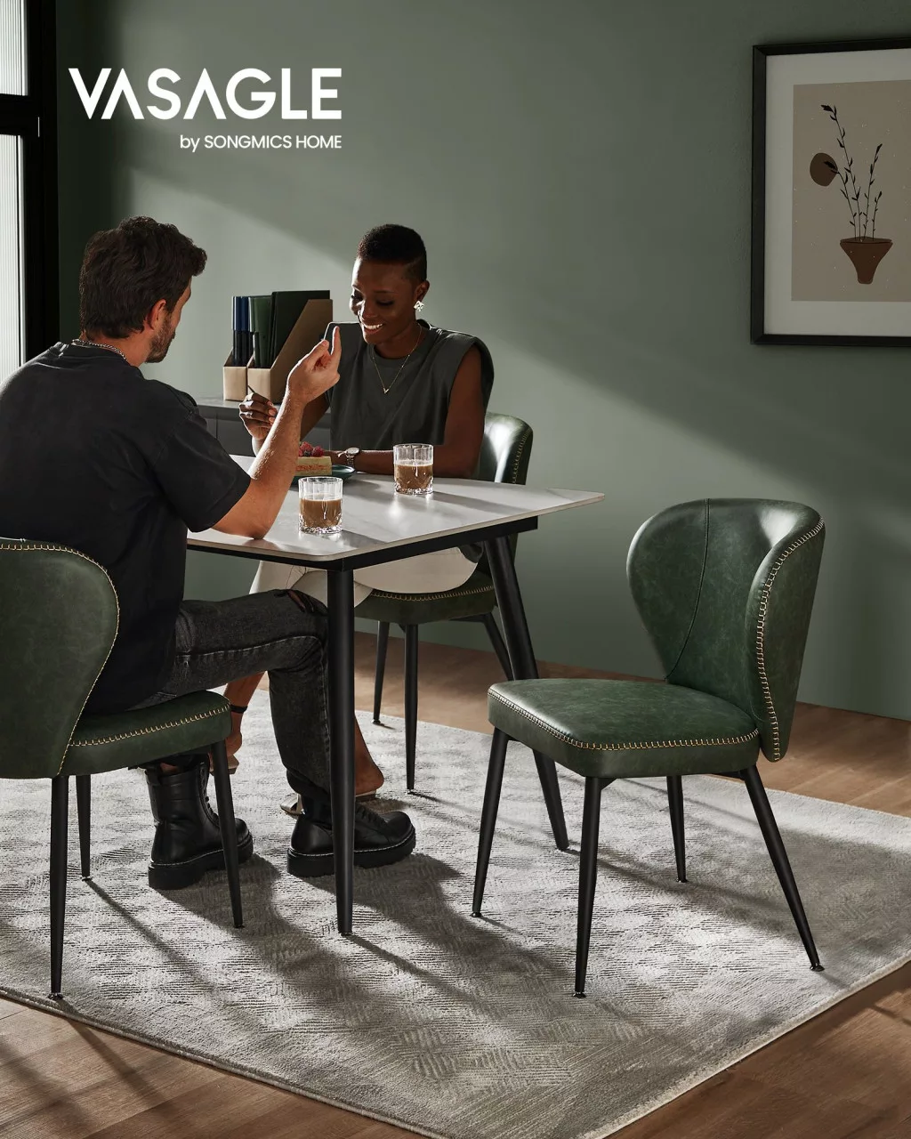 VASAGLE EKHO Kárpitozott Étkezőszék Szett Mid-Century Modern PU Bőr Erdőzöld