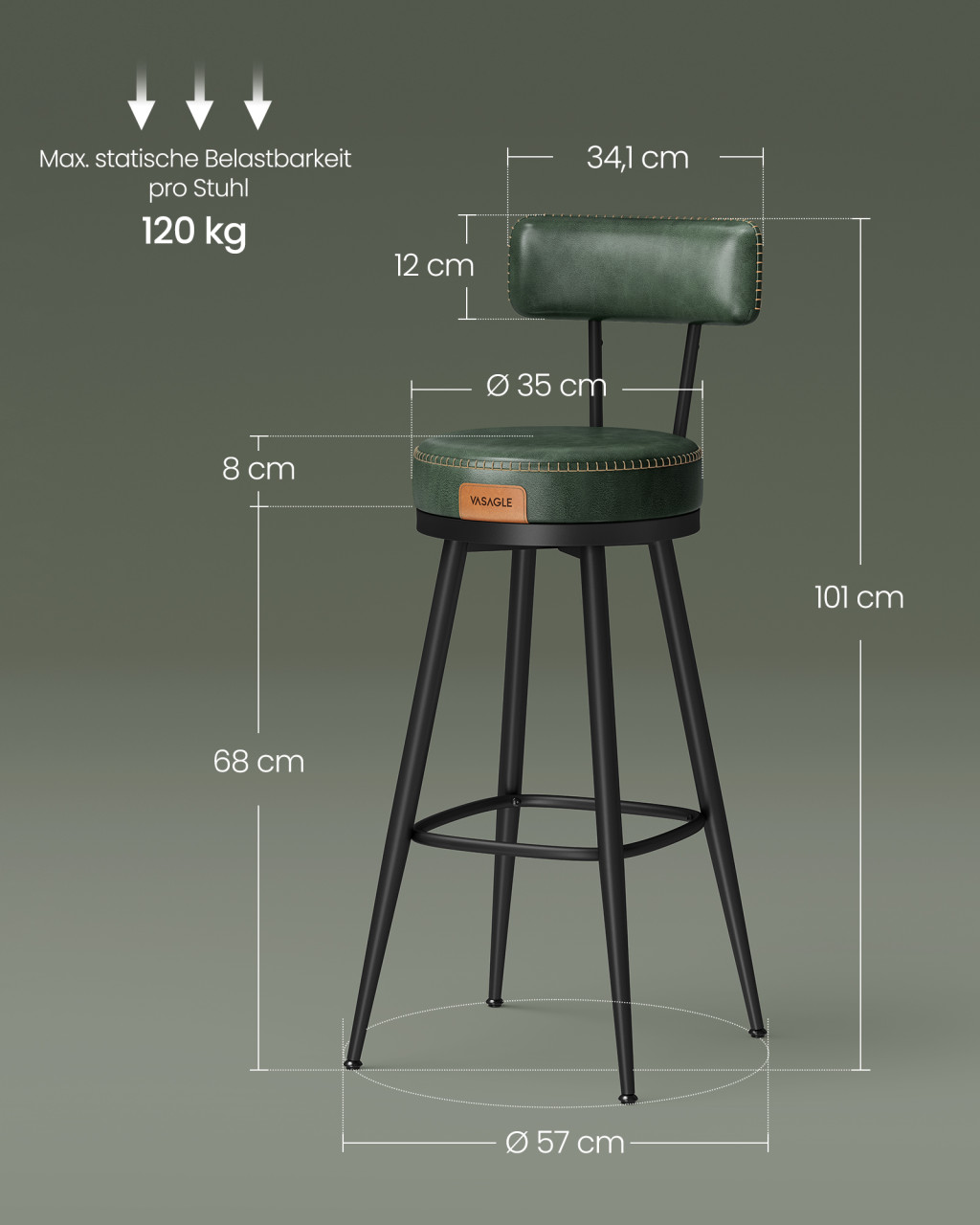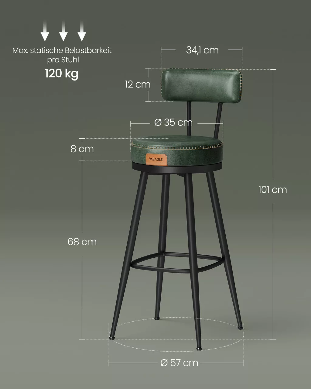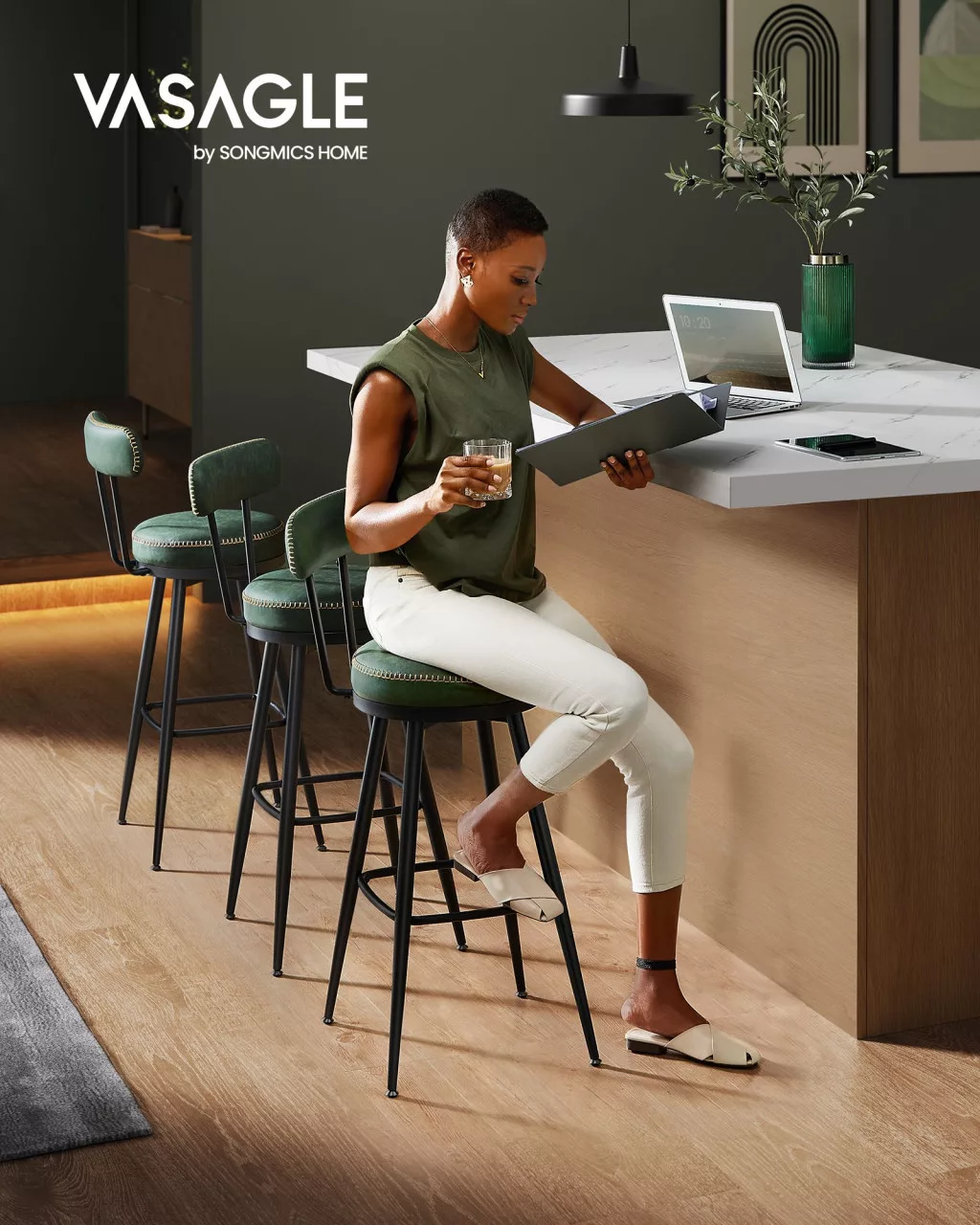 VASAGLE EKHO Konyhai Bárszék Műbőr Kárpitozással Erdőzöld