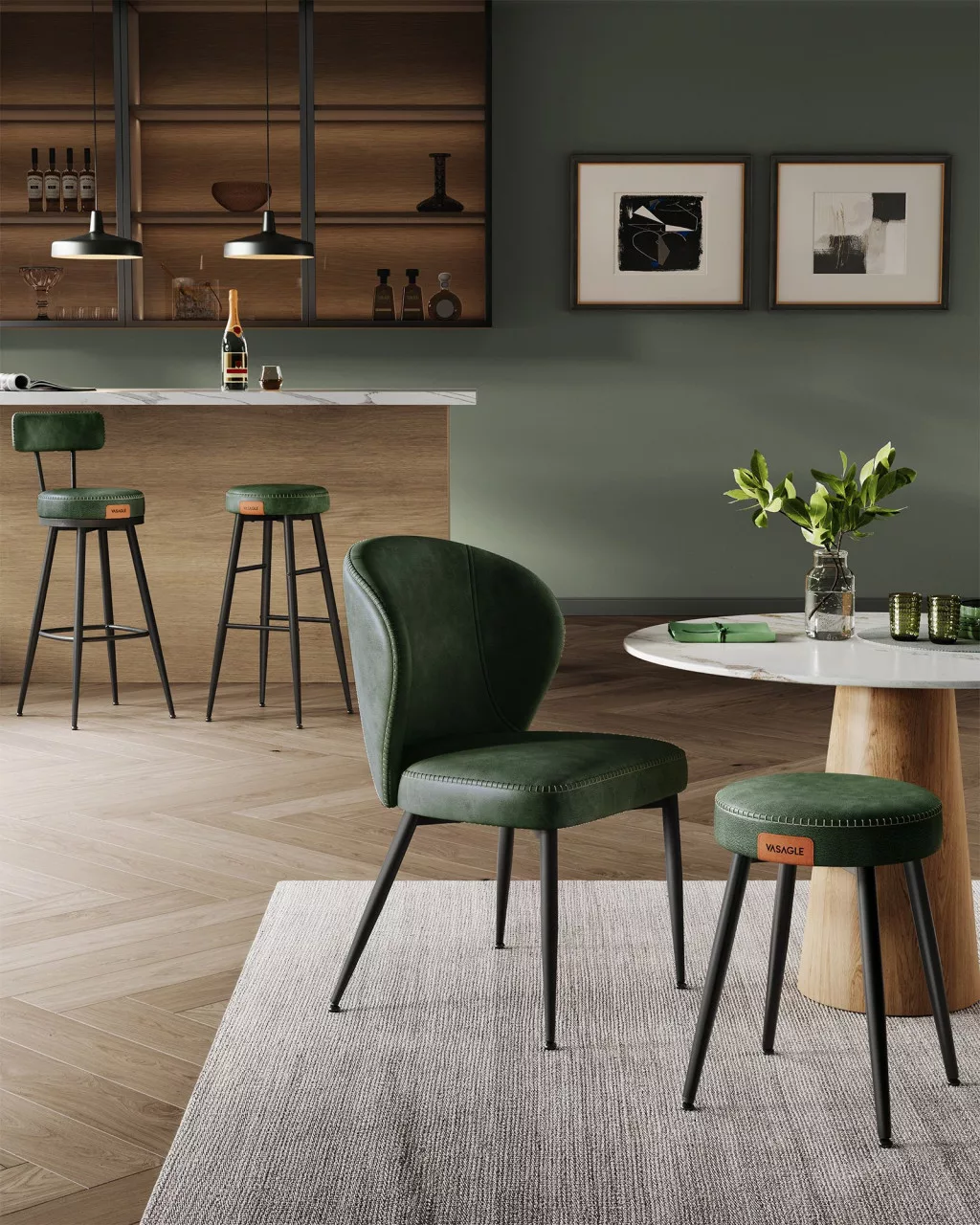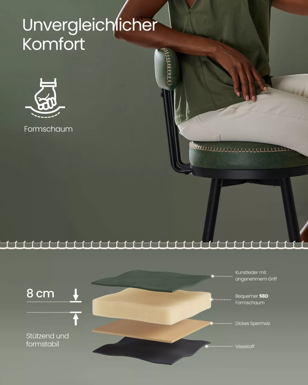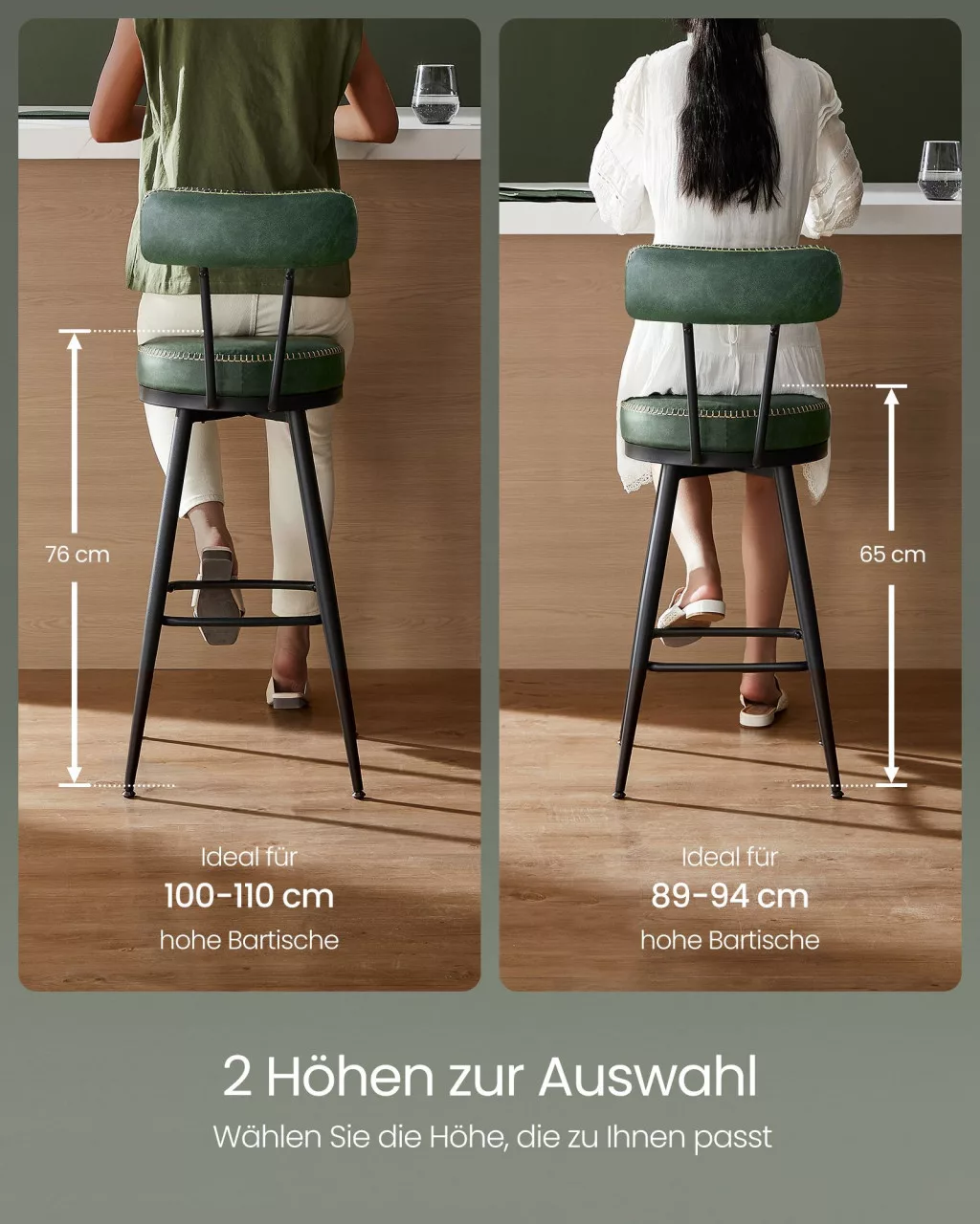 VASAGLE EKHO Konyhai Bárszék Műbőr Kárpitozással Erdőzöld