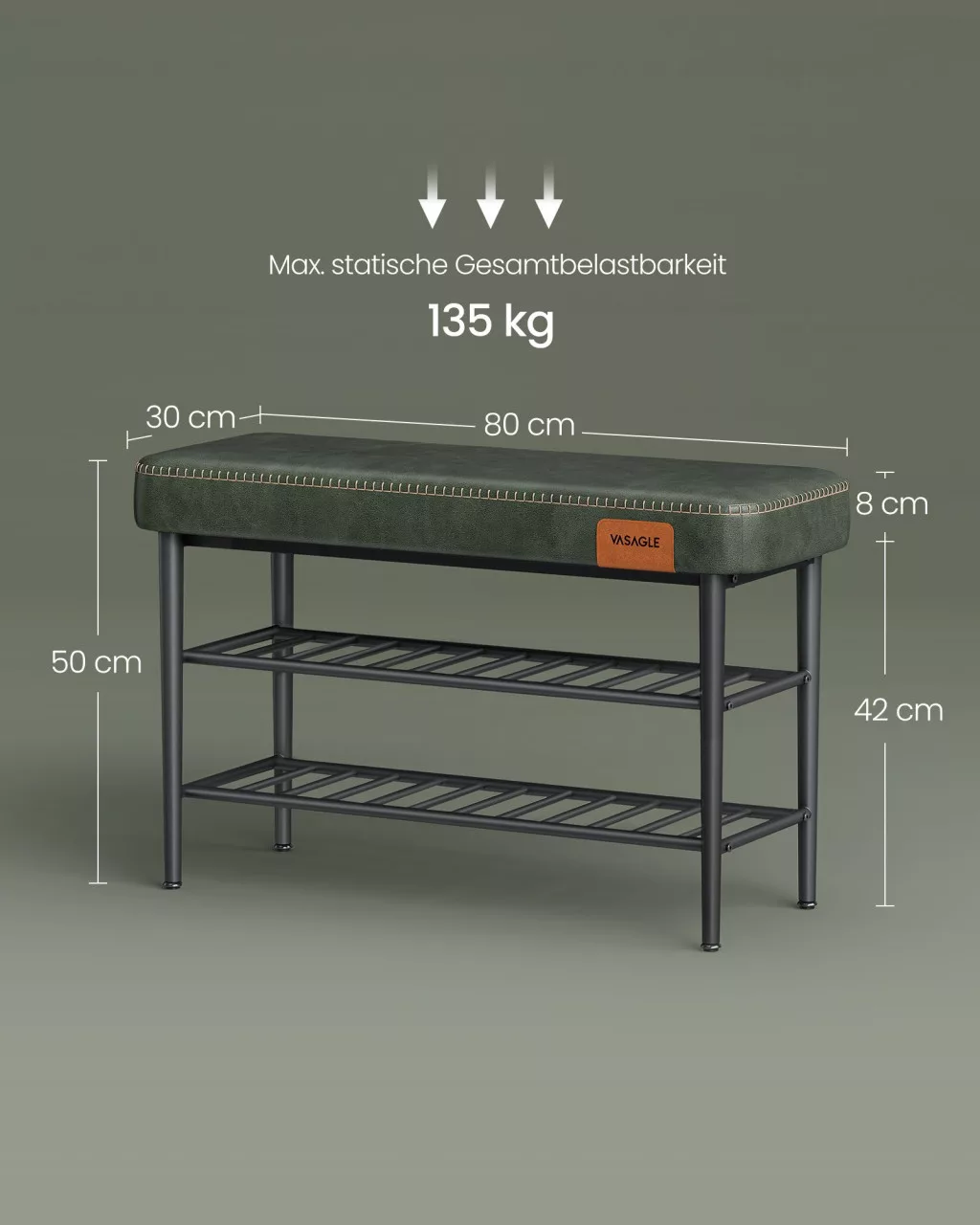 VASAGLE EKHO LSB054C01 cipős pad műbőr erdőzöld 80 x 30 x 50 cm