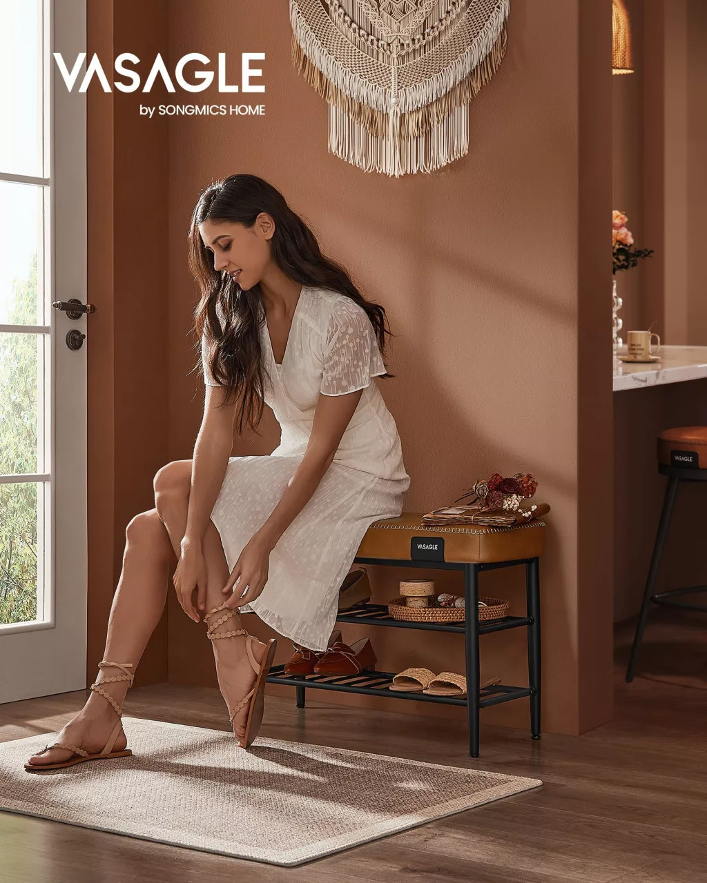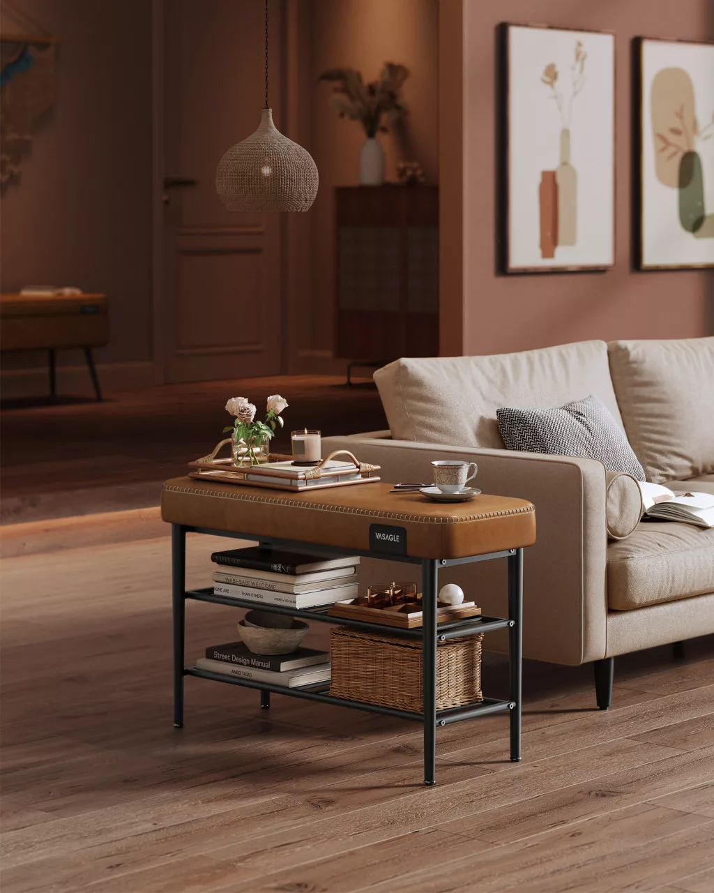 A VASAGLE EKHO LSB054K01 cipős pad a funkcionalitás és az elegáns design tökéletes ötvözete. A 8 cm vastag, 25D nagy rugalmasságú habszivacs ülőfelület tartós kényelmet biztosít, amely nem deformálódik még hosszú használat után sem. A finom varrásokkal díszített karamell színű műbőr borítás nemcsak gyönyörű látványt nyújt, hanem könnyen tisztítható is, így mindig kifogástalan marad az előszobája.