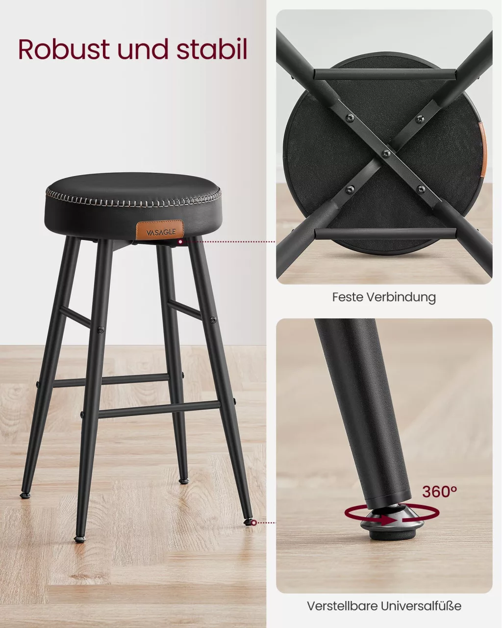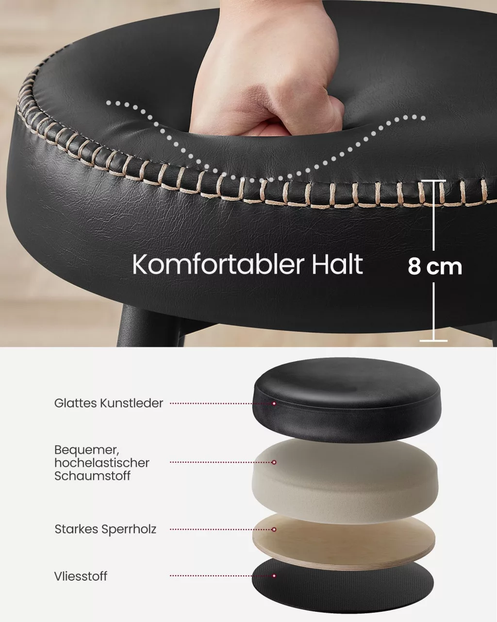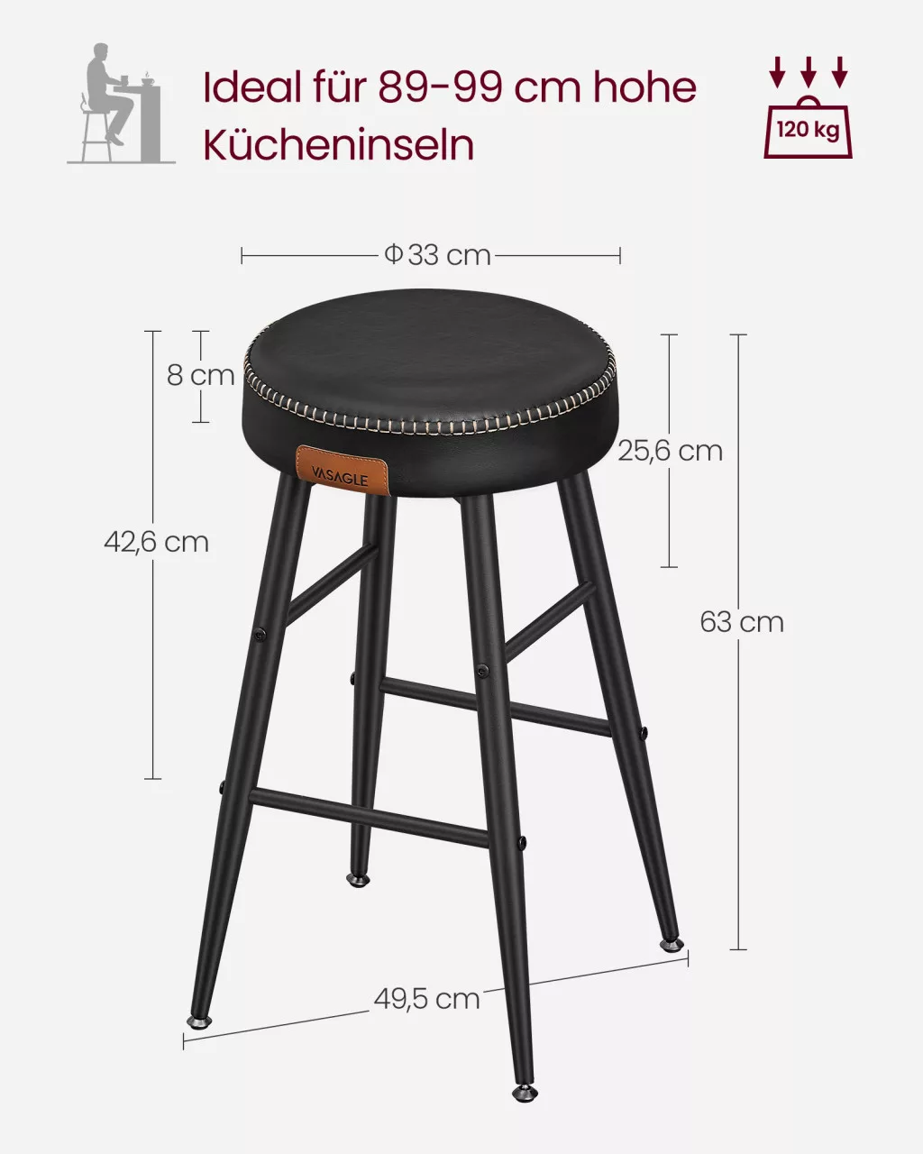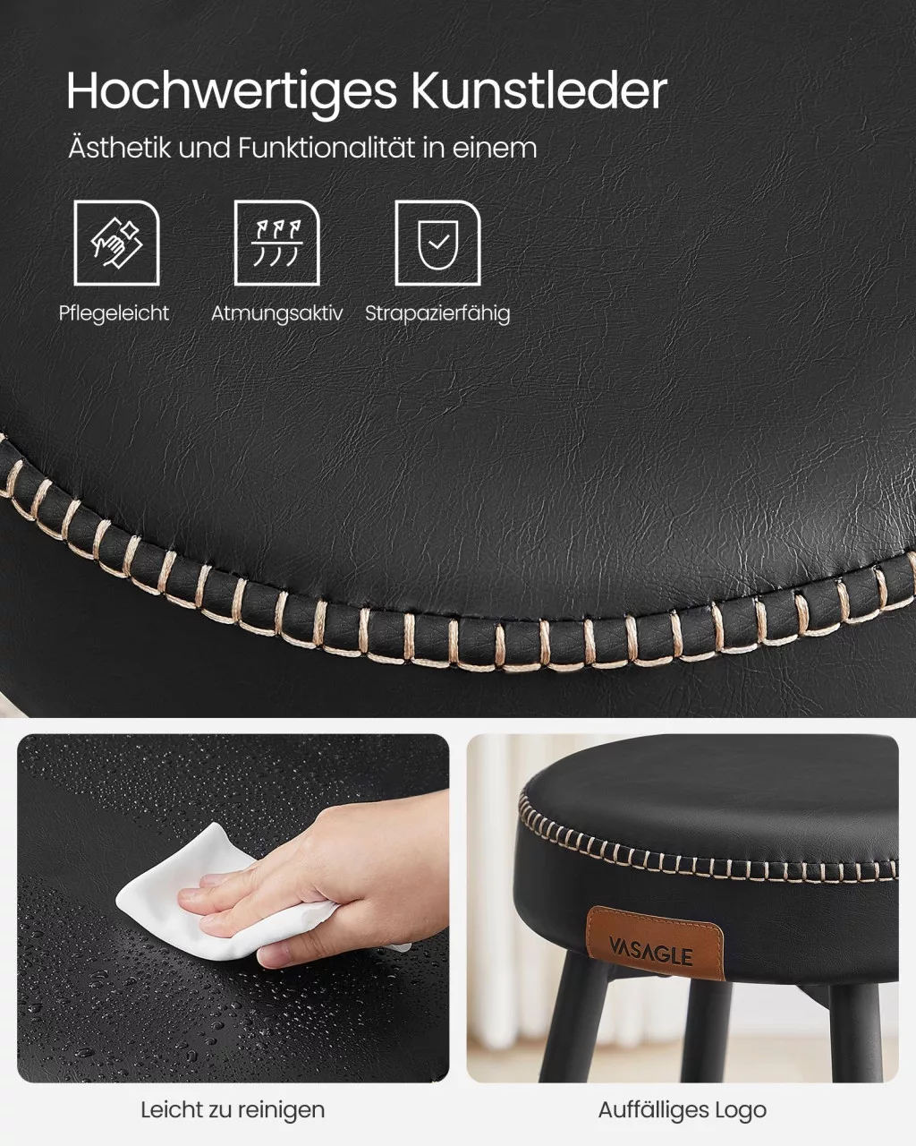 A VASAGLE EKHO kollekció bárszékei a modern dizájn és a praktikus funkcionalitás tökéletes ötvözetét nyújtják. A prémium minőségű műbőr borítás és a dekoratív varrás elegáns megjelenést kölcsönöz, míg a 8 cm vastag formázott habszivacs ülőpárna hosszan tartó kényelmet biztosít.