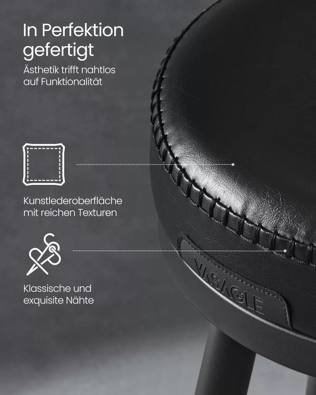 • Prémium műbőr borítás finom varrással: Elegáns megjelenést kölcsönöz az otthonnak, miközben tartós és könnyen tisztítható felületet biztosít