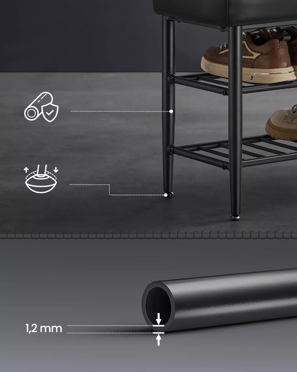 A VASAGLE EKHO kollekció díjnyertes cipős padja elegáns műbőr kárpittal és kiváló ülőkomforttal várja Önt az előszobában. A stabil acélváz és a praktikus cipőtároló polcok tökéletes kombinációja a stílusnak és a funkcionalitásnak.