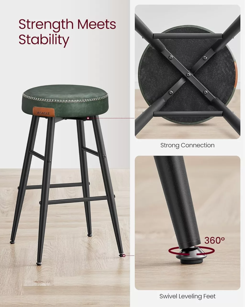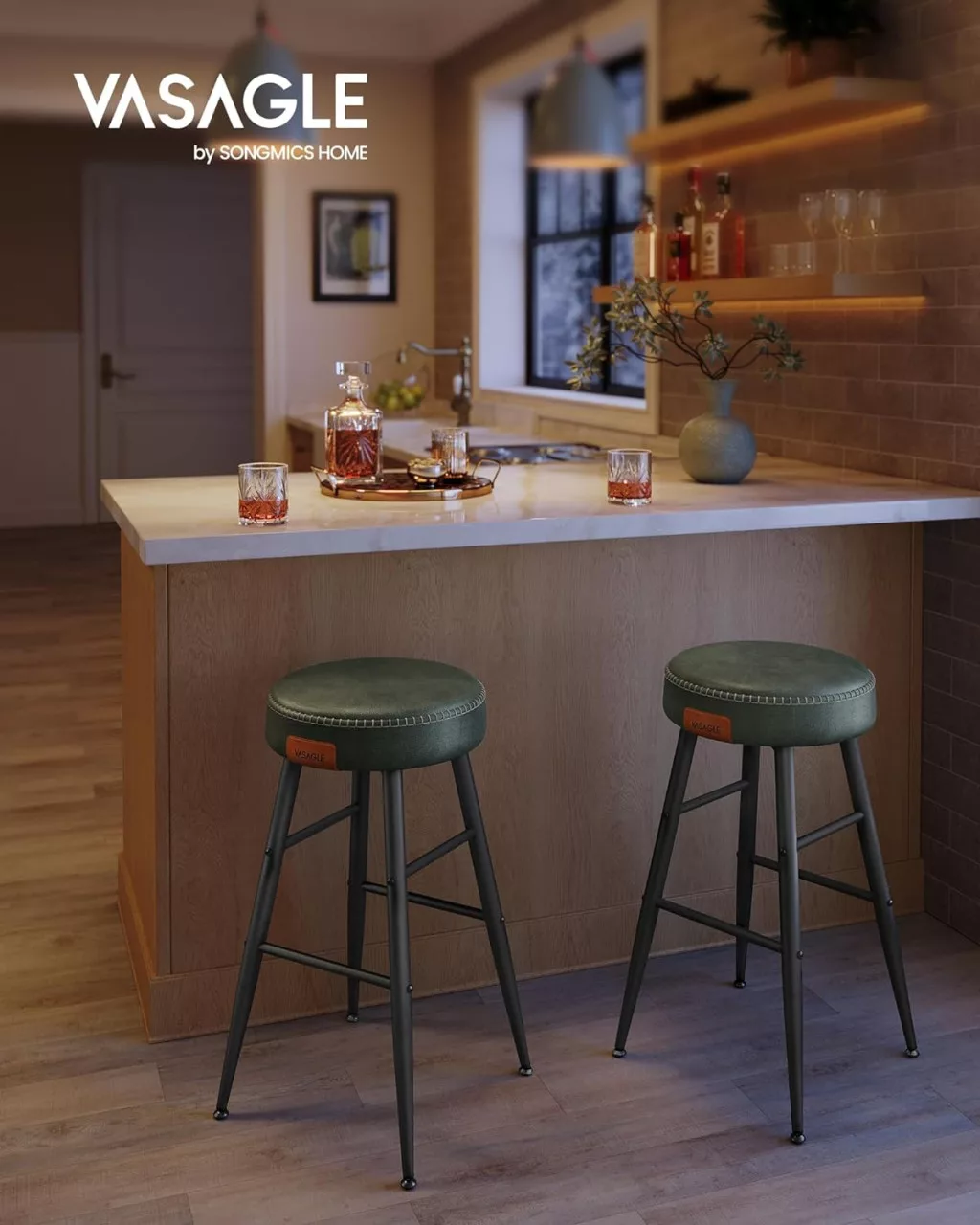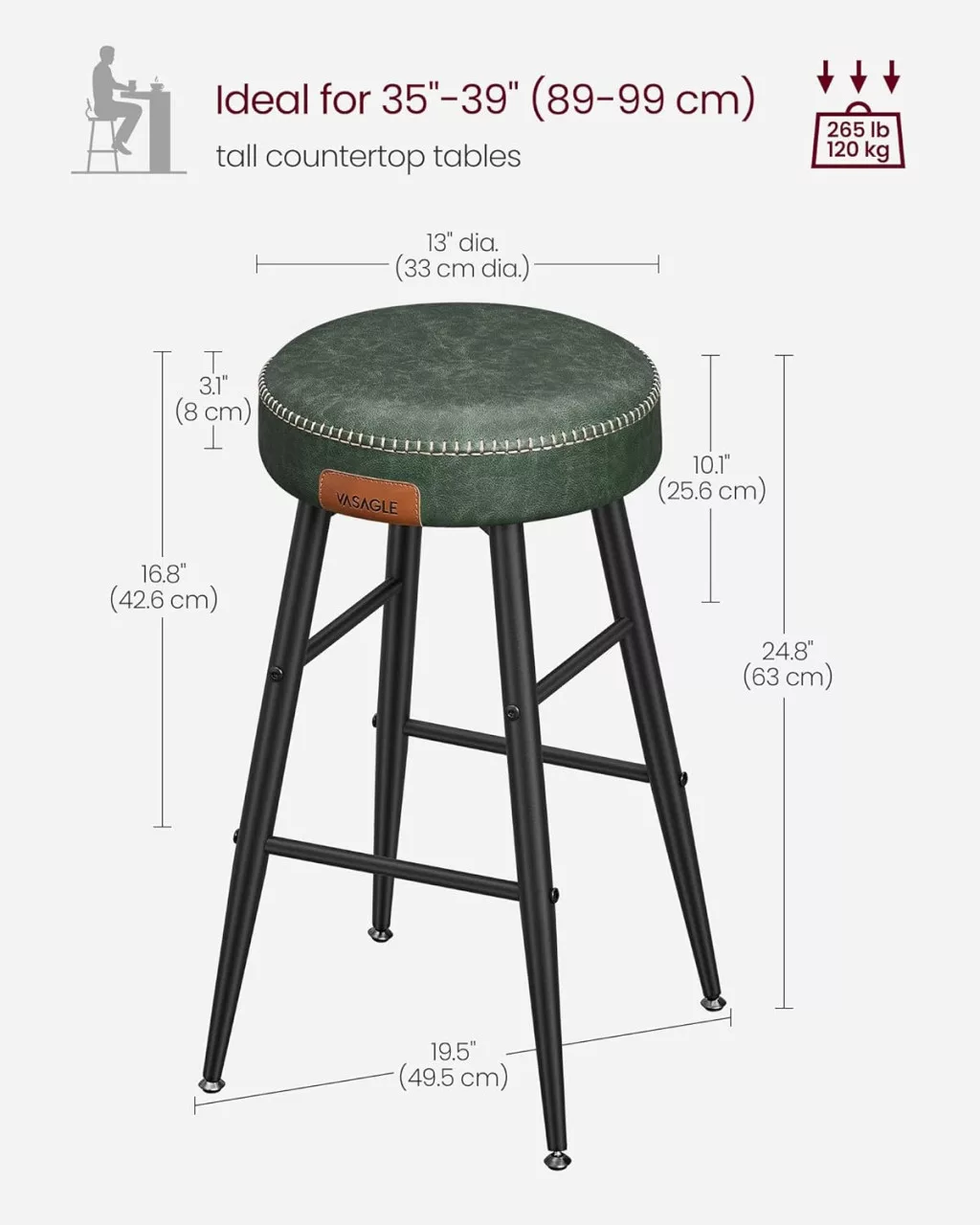 VASAGLE Echo Collection Bárszék Szett Műbőr Erdőzöld