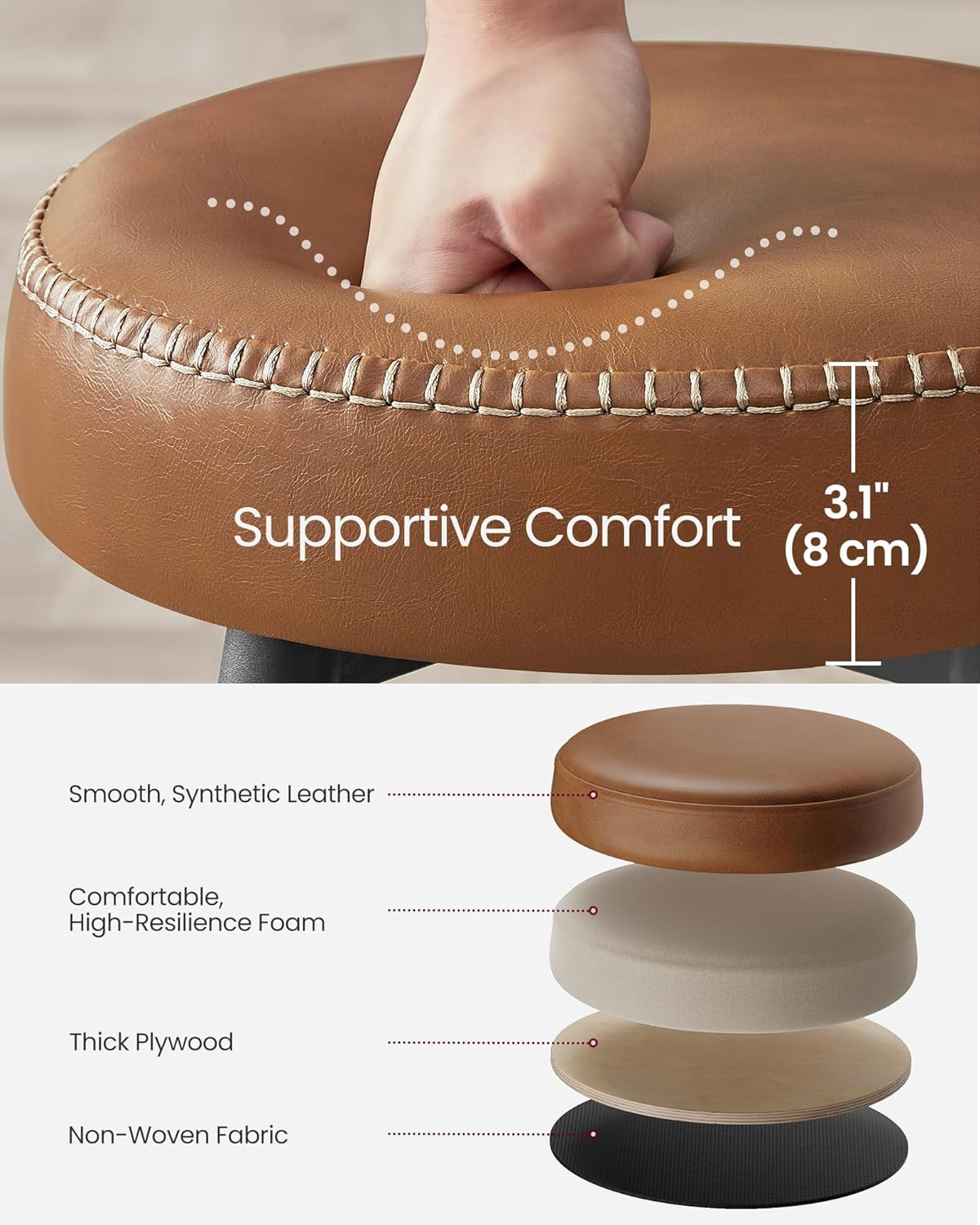 Emelje otthona stílusát a VASAGLE Echo Collection bárszékeivel! A karamell barna műbőr kárpit, a finom varrás és az elegáns kúpos lábak tökéletes kombinációja, 8 cm vastag, nagy rugalmasságú habpárnázással a tartós kényelemért.