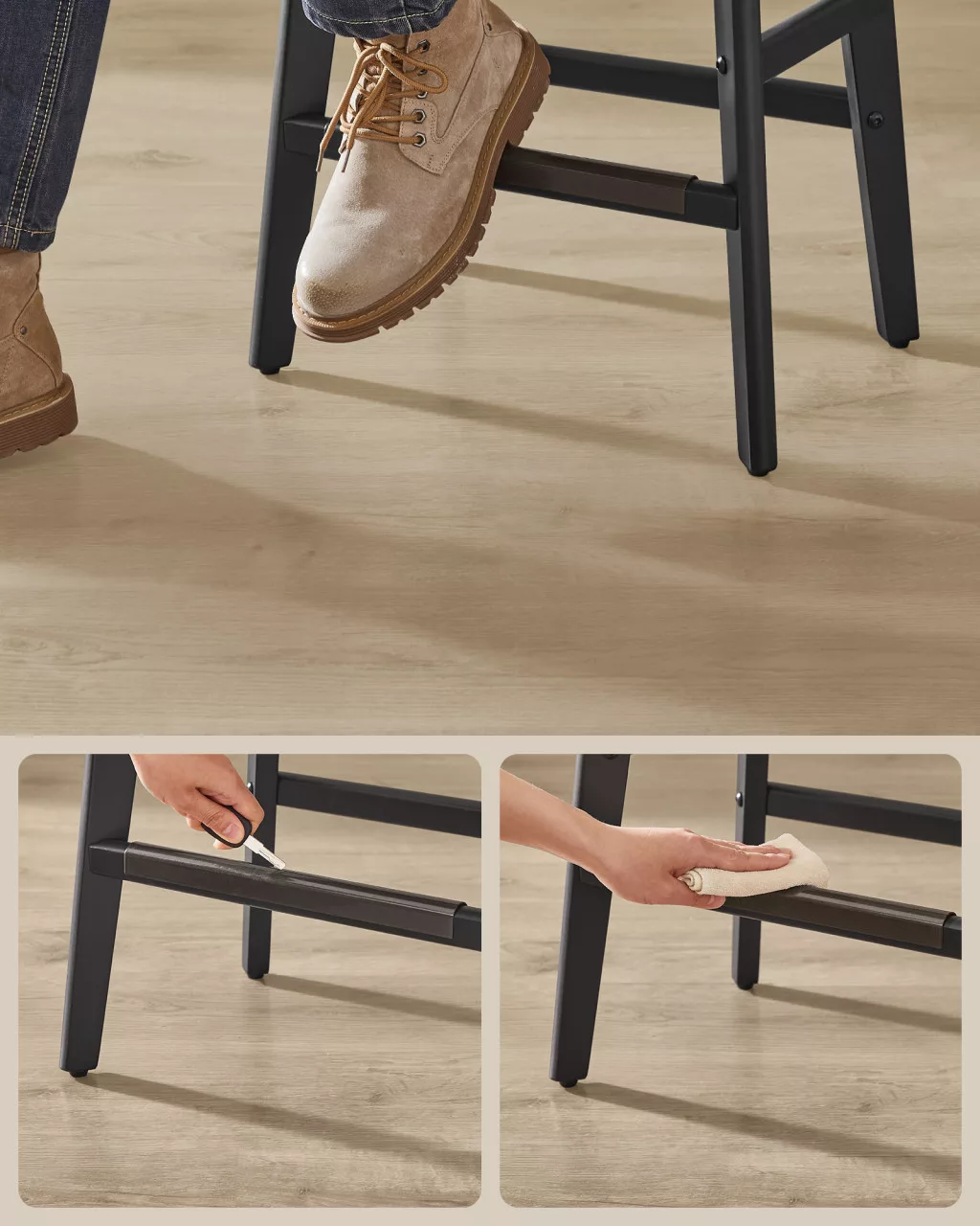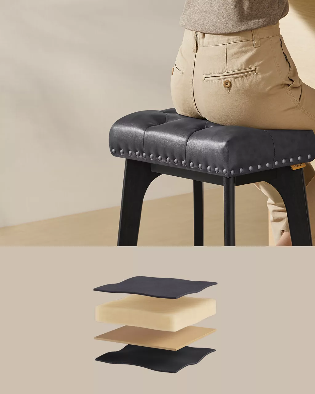 A VASAGLE bárszék szett egyesíti a klasszikus eleganciát a modern funkcionalitással. A tűzött gombos kárpitozás és a szegecsdíszítés időtlen megjelenést kölcsönöz, míg a magas minőségű műbőr borítás tartósságot és könnyű tisztíthatóságot biztosít.