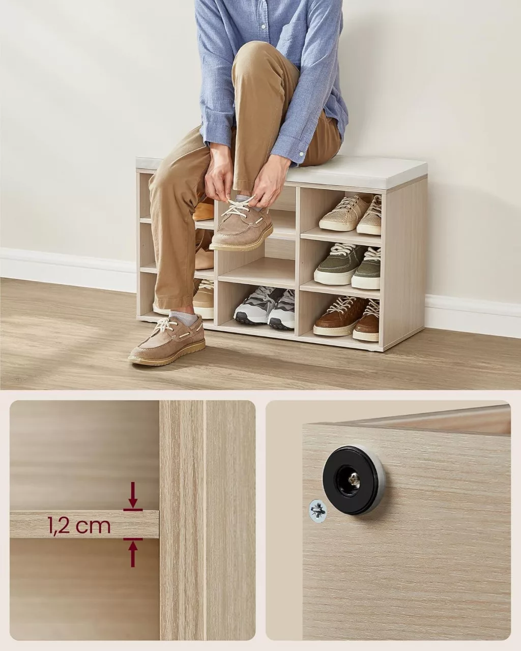 VASAGLE Elegance Cipőtároló Pad Természetes Bézs 9 Rekesszel