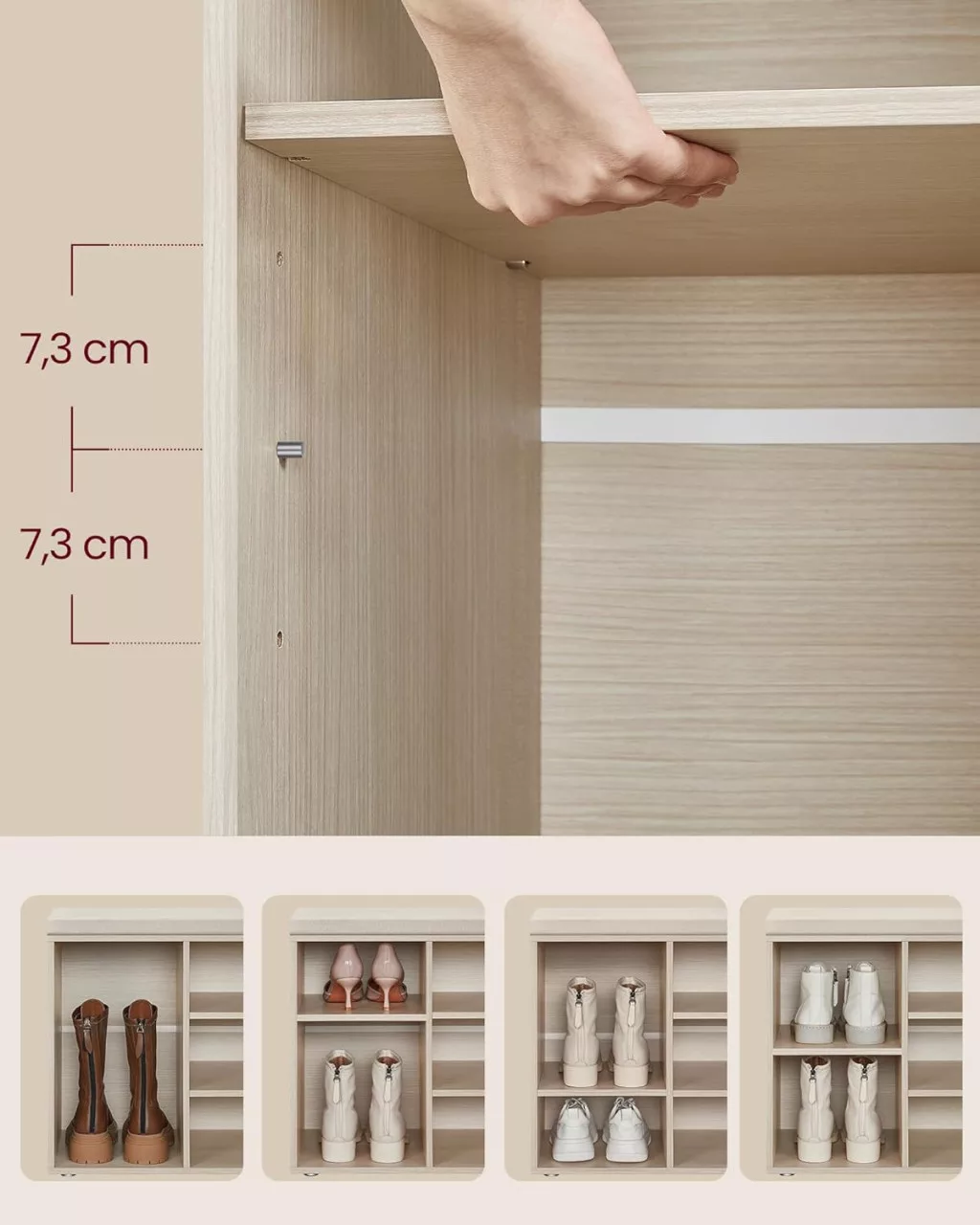 • 9 tágas rekesz a cipők rendezett tárolásához
