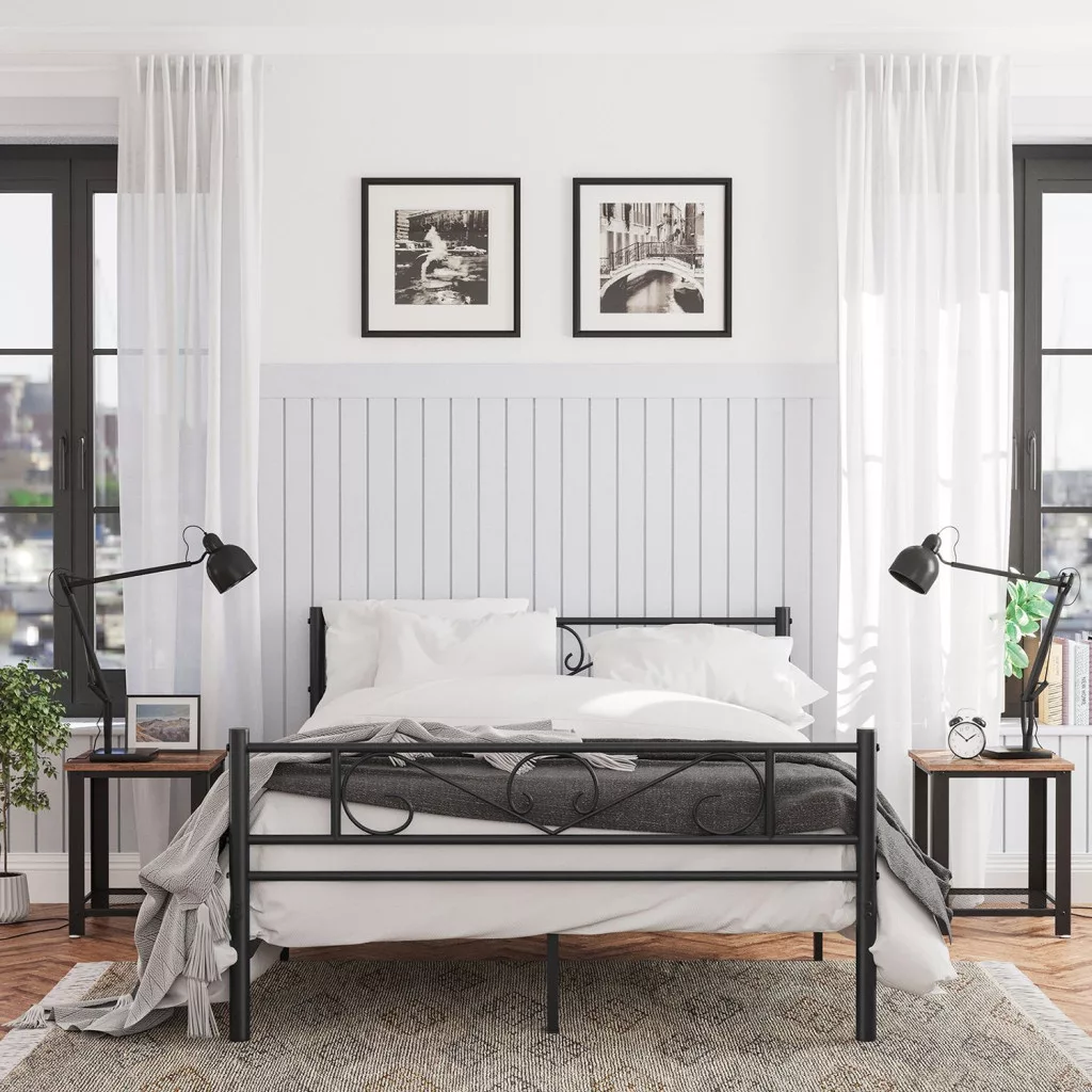 VASAGLE Elegance Fém Franciaágy Keret Fekete Díszítéssel