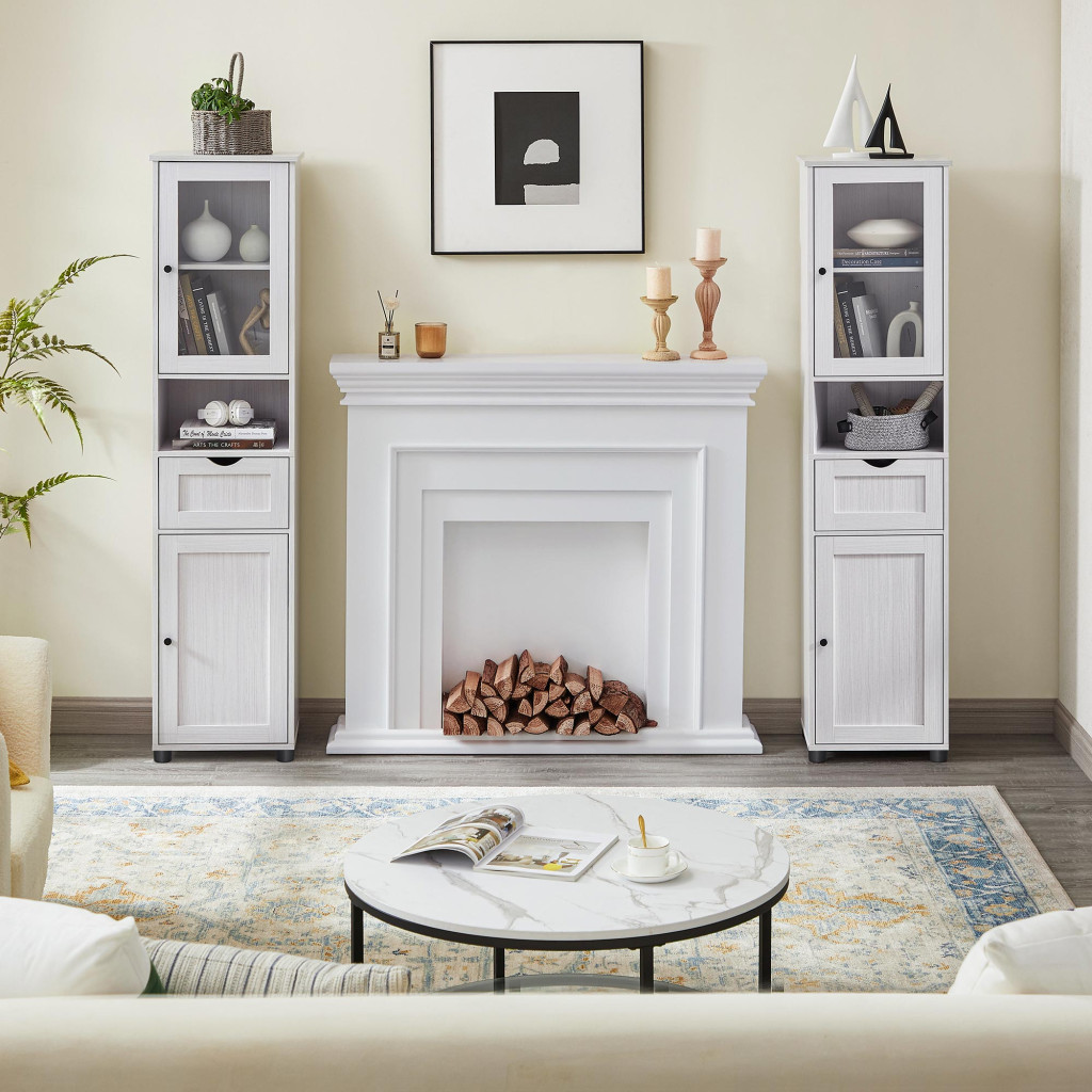 Elegáns, karcsú fürdőszobai oszlopszekrény többféle tárolási megoldással, üvegajtóval és vízálló lábakkal a maximális helykihasználás érdekében.