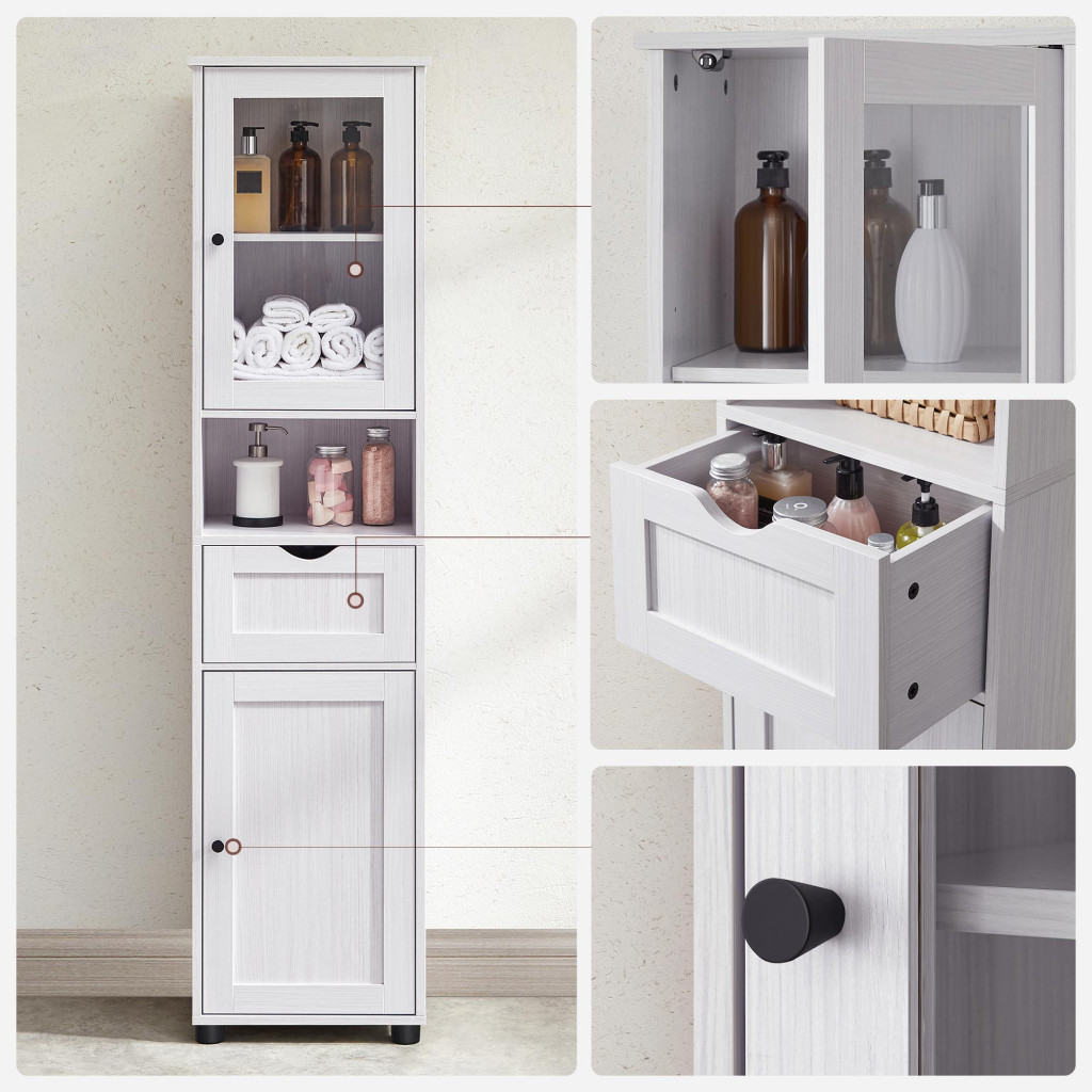 VASAGLE Elegance Fürdőszobai Oszlopszekrény Állítható Polcokkal Fehér