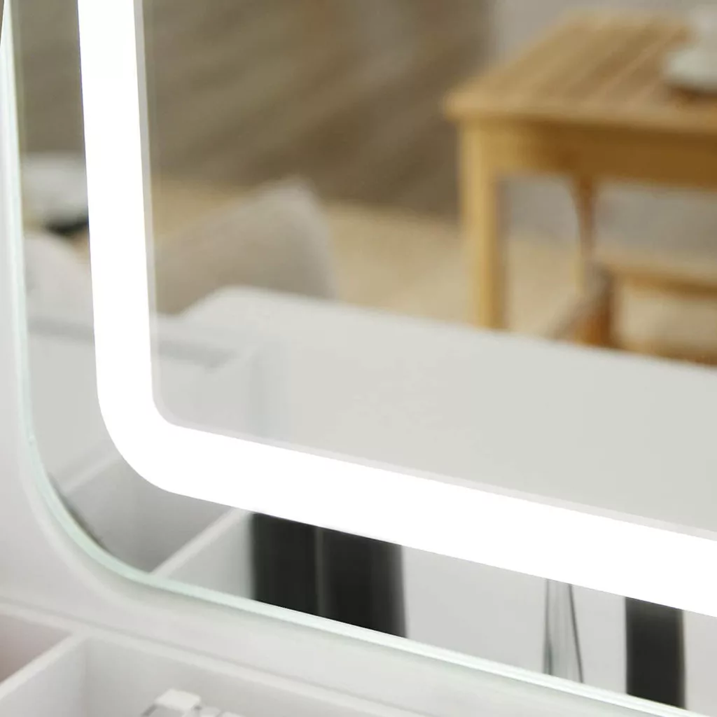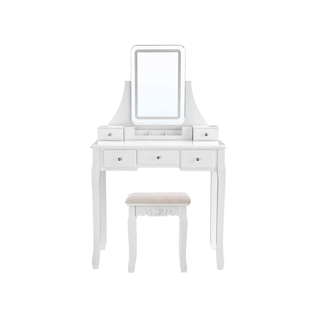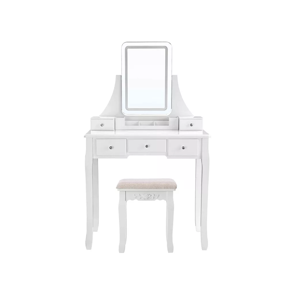 VASAGLE Elegáns LED Világítású Fésülködőasztal Fehér Kivitelben