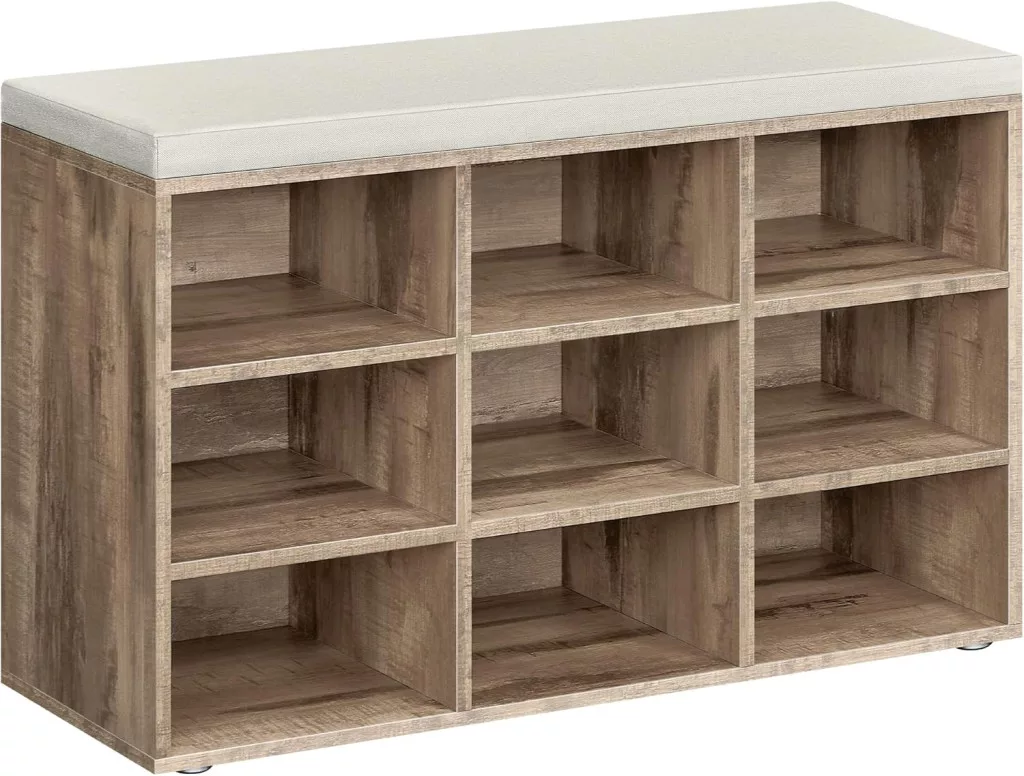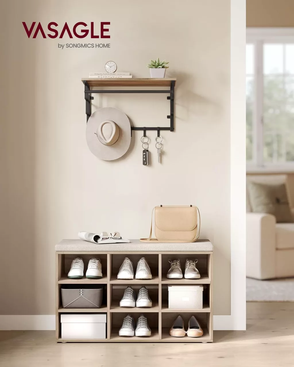 VASAGLE Előszobai Cipőspad Ülőpárnával és 9 Rekesszel Tevebarna