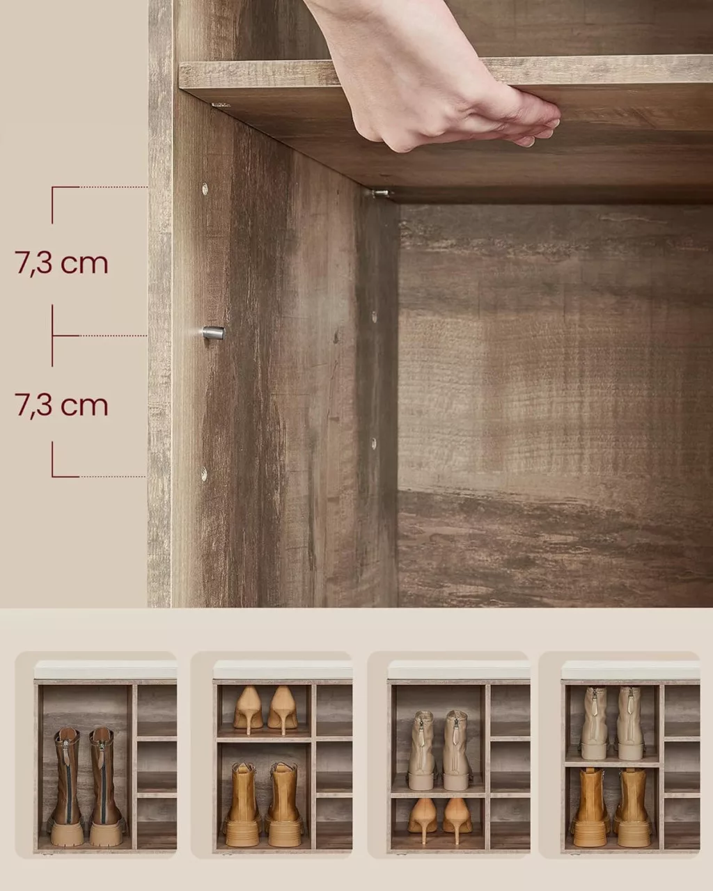 • Állítható rekeszek: Rugalmas tárolási lehetőség különböző méretű lábbelikhez