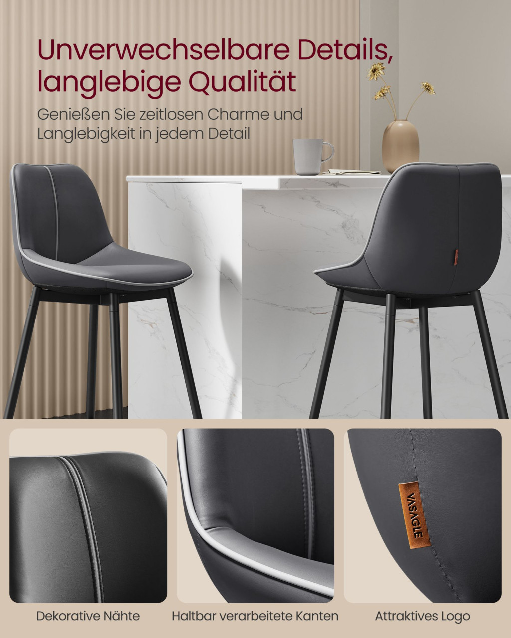VASAGLE Ergonomikus Bárszék Szett PU Bőr Kárpitozással Fekete
