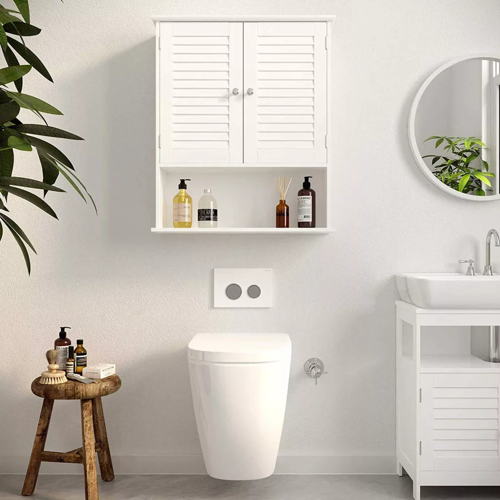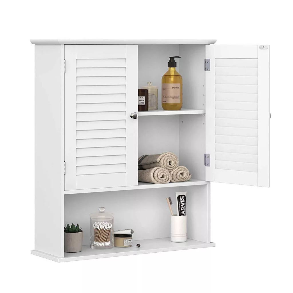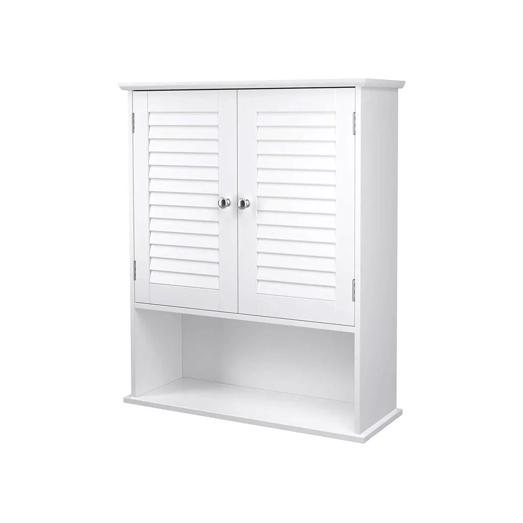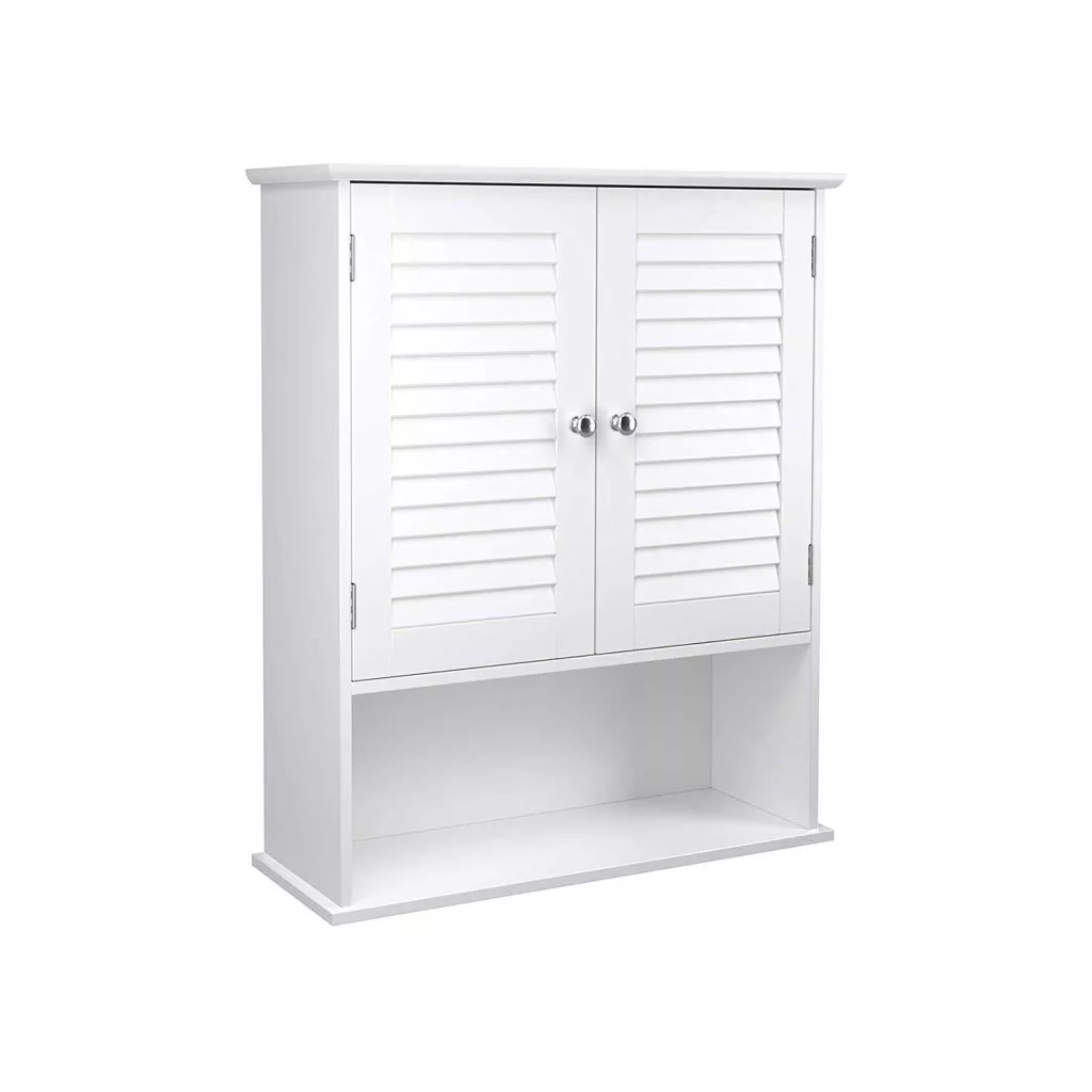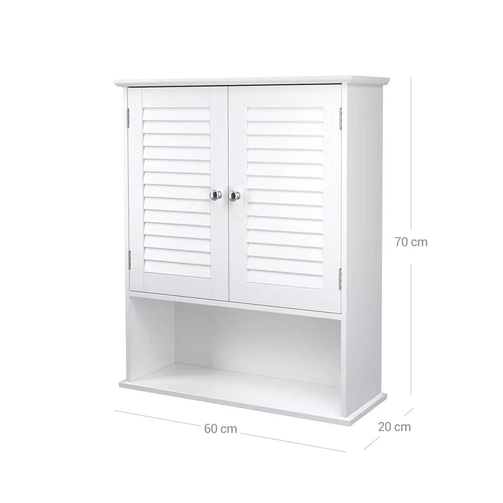 VASAGLE Fali Fürdőszobai Szekrény Zsalus Ajtókkal Fehér MDF