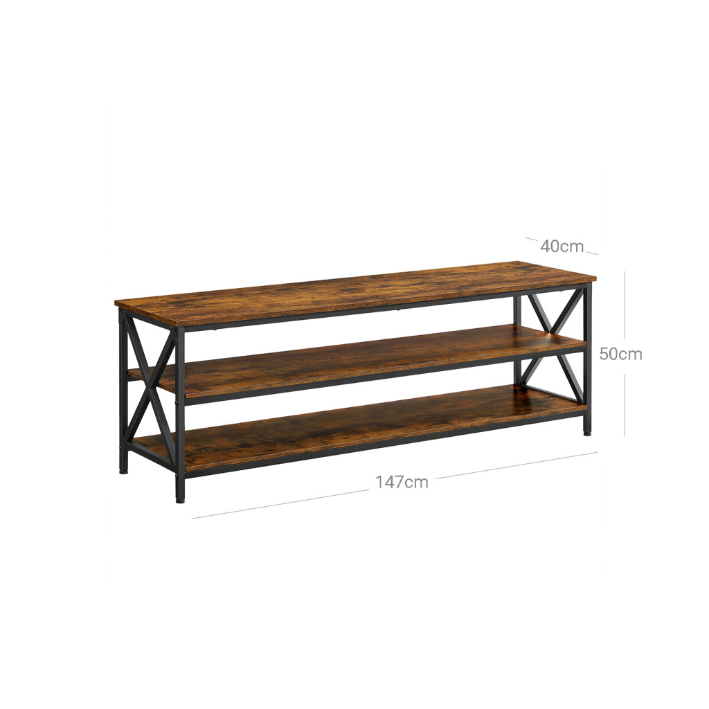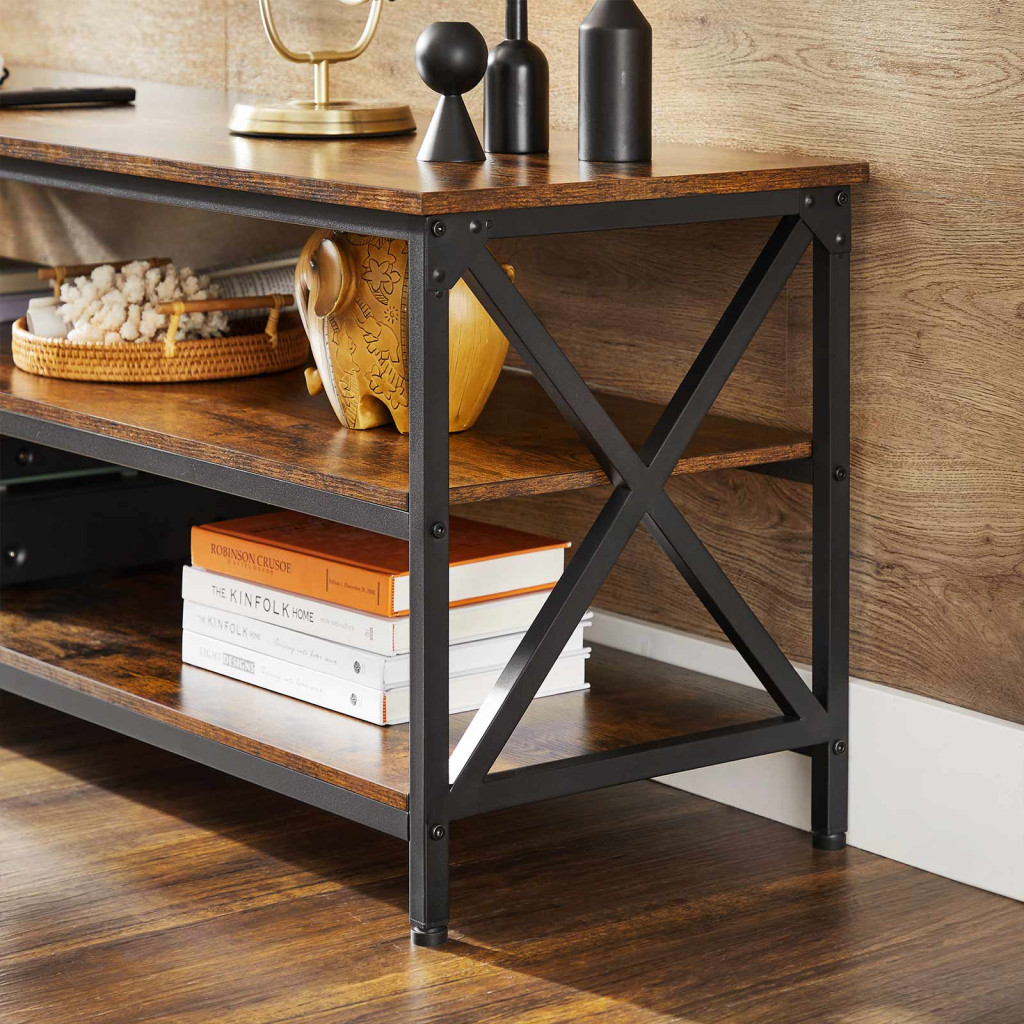 VASAGLE Farmhouse TV Szekrény X-Alakú Acélvázzal Rusztikus Barna-Fekete