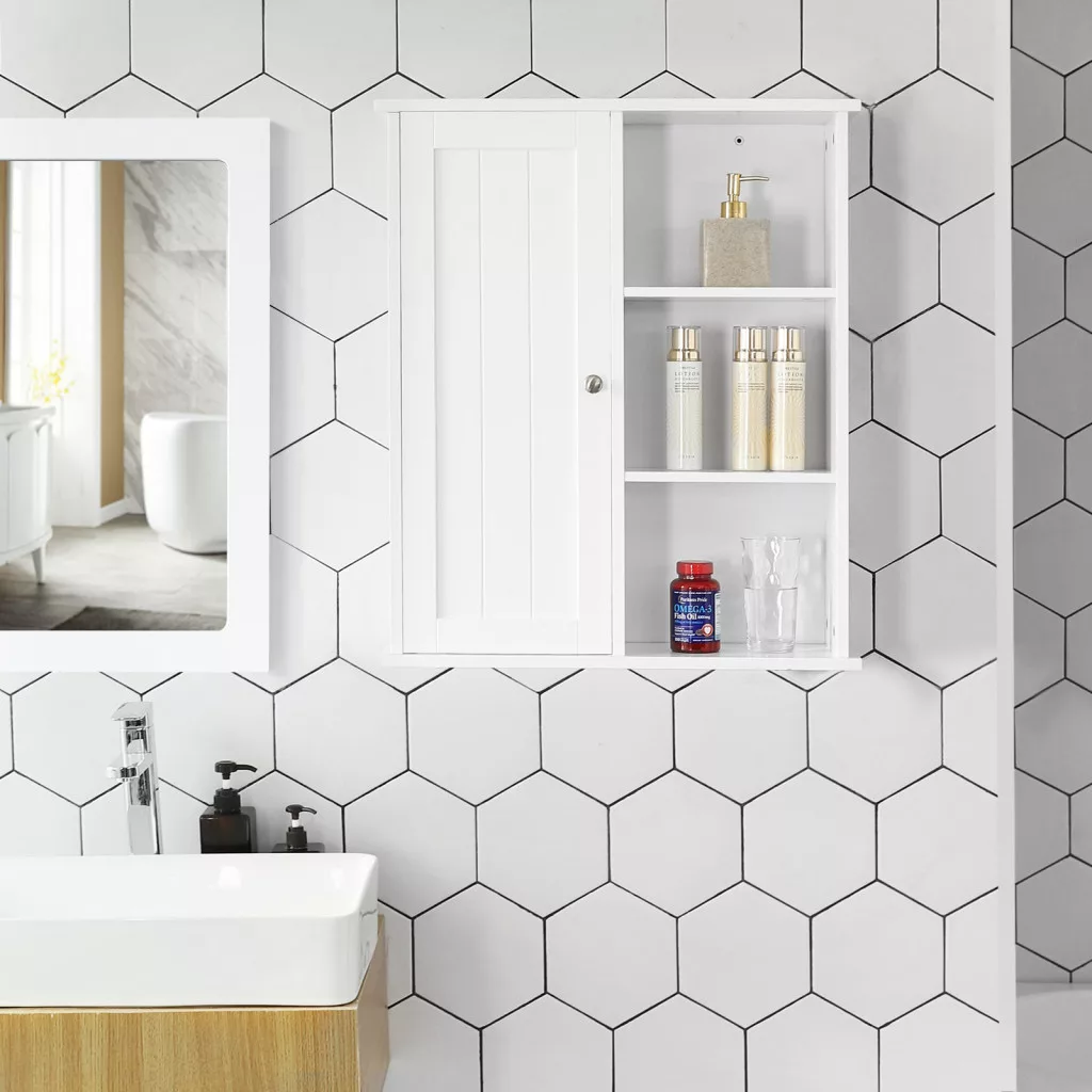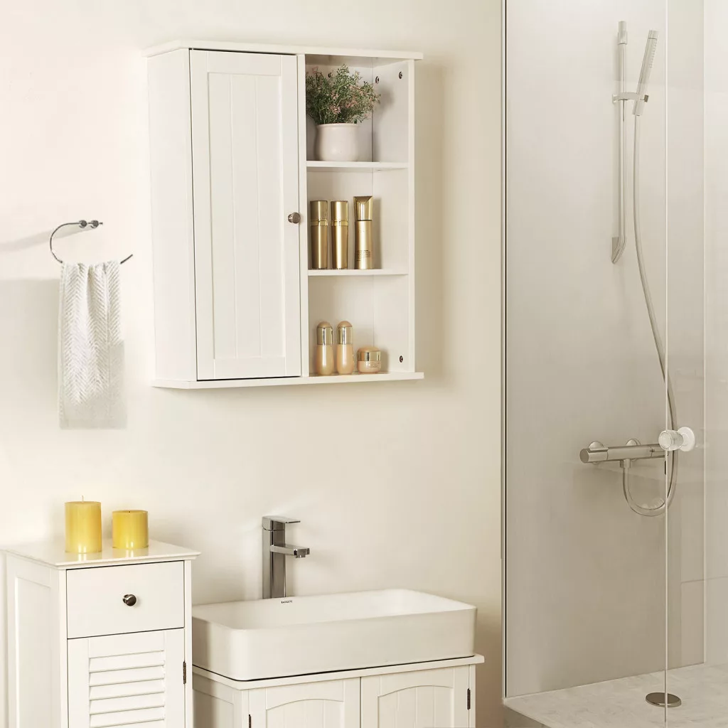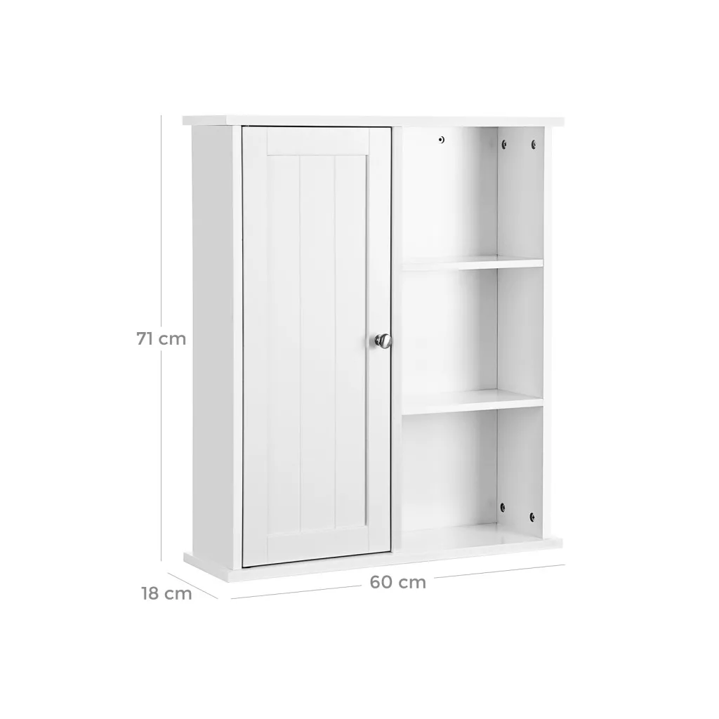 VASAGLE Fehér Fali Fürdőszobaszekrény Állítható Polcokkal