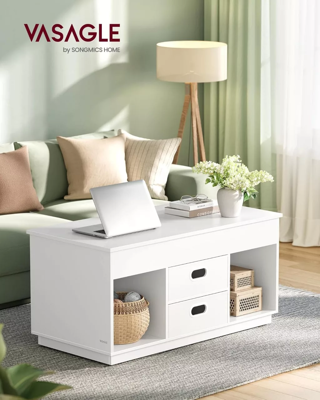 VASAGLE Felnyitható Dohányzóasztal Fehér Tárolós